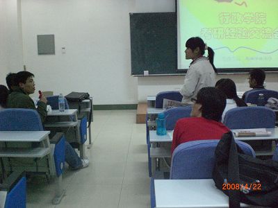 此次到场的两位嘉宾是公司04级的王展飞和杜泽金学长,他们首先以讲座的方式,为大家讲述了关于考前准备和考试技巧等方面的个人经验,特别是系统地指出了考研英语及政治的复习与答题方式,引人深思。随后,在互动交流时间中,在场的同学就自己关心的考研问题向两位学长作了细致而深刻的提问,并从他们极富经验的回答中解开了一系列疑问,互动氛围融洽而活跃,不时引起阵阵笑声。最后,主办方代表公司04级刚刚结束考研的同学们,向在场的同学赠送考研复习材料,得到大家的积极响应。