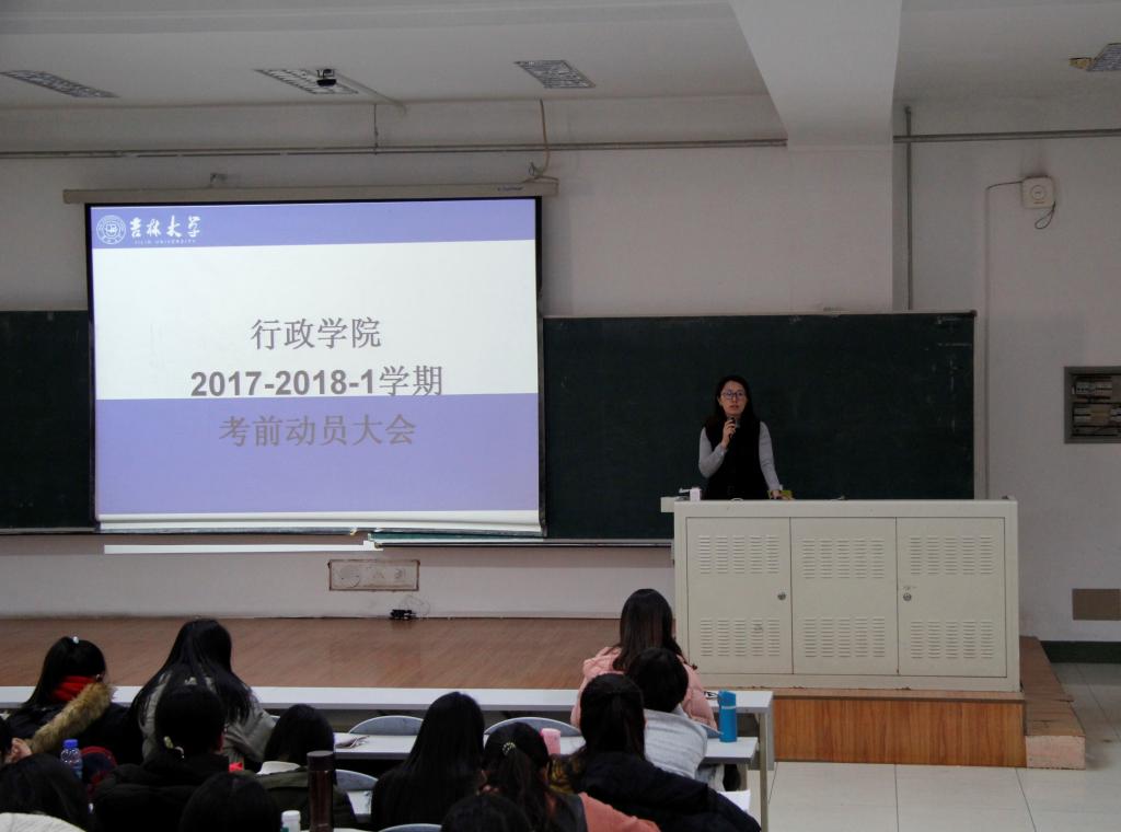 12月21日下午,伟德体育于中心校区第三教学楼第九阶梯教室召开了2017-2018学年第一学期考前动员大会。伟德体育副经理殷冬水、党委副书记兼副经理史慕华,学工办主任刘洋和本科教学秘书高琛出席本次动员大会。2015级、2016级和2017级全体本科生参加大会。