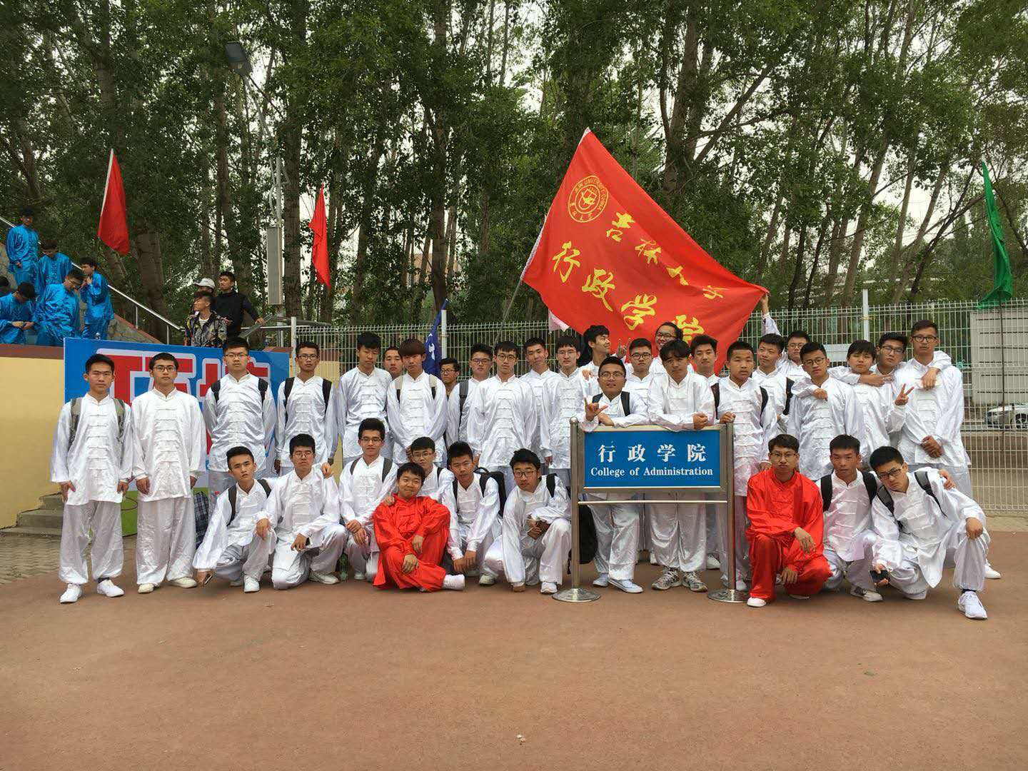行政学经理拳方队喊着嘹亮的口号跑步入场。当比赛音乐响起时,参赛队员就以一个精彩的亮相赢得了一阵欢呼。伴着音乐,队员们行云流水般的动作、矫健的身姿展现出非同一般的气势与十足的力量感,彰显行政健儿飞扬的青春活力。