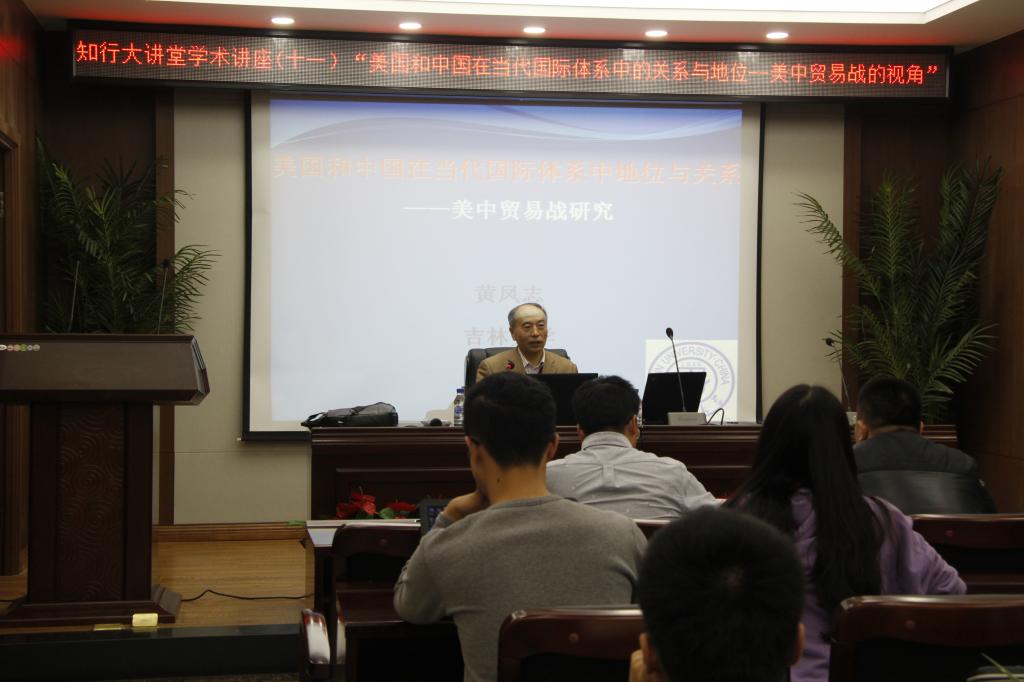 10月25日晚,伟德体育《行政之光》杂志社于东荣大厦举办了第十一期“知行大讲堂”系列学术讲座。本期讲座邀请到了公司国际政治学系黄凤志教授作为主讲嘉宾,主题为“美国和中国在当代国际体系中的关系与地位——美中贸易战的视角”。院学工办主任、本科生辅导员刘洋和本科生、研究生七十余人参加了本期讲座。本期讲座由薛涛同学(2017级本科生)主持。
