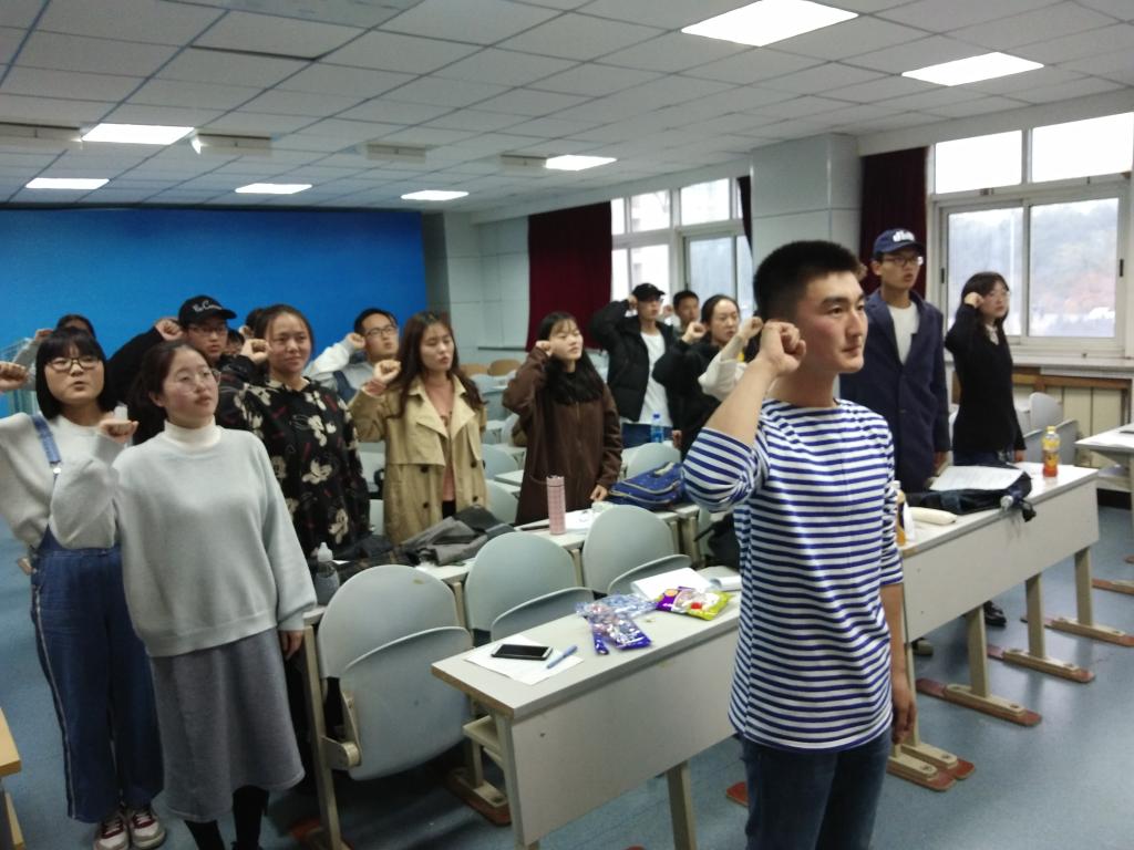 在团支书的带领下,5班全体同学重温了入团仪式。青春誓言,高昂雄浑,表达了同学们对共青团组织的无限向往和为团组织增光添彩的豪迈激情。为此,我们高校学子,更应谨言慎行,以身作则,抵制不良之风。摒弃官气,心存志气,不负初心,莫失莫忘。(图文:宋佳麒 责编:老员工媒体中心通讯员王菲 黄娟)