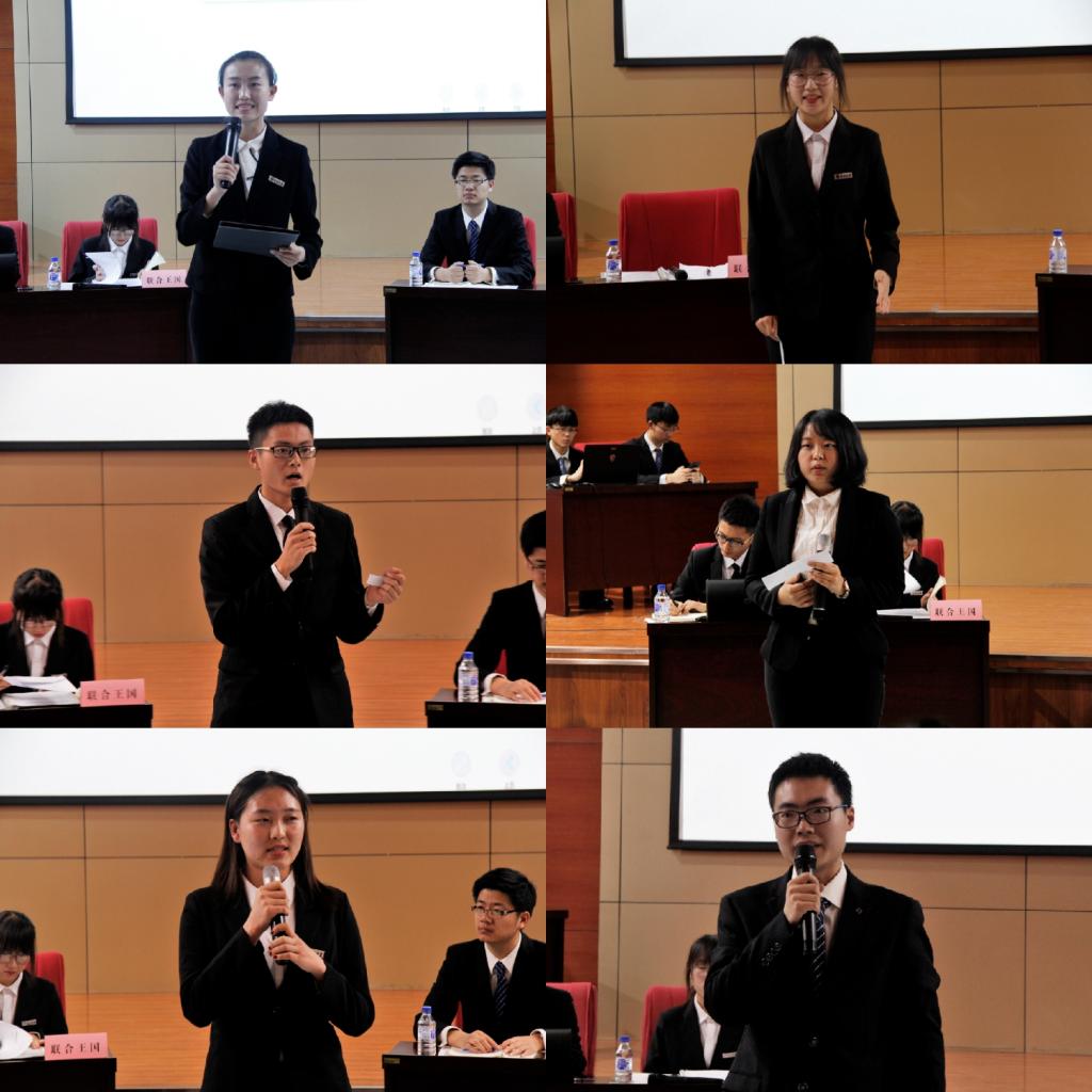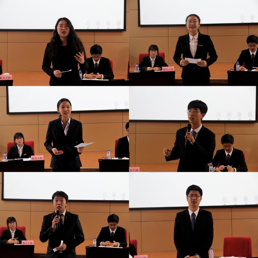 抽题演讲环节中,同学们就自己所抽到的题目发表了独到、精辟的演讲,展现出随机应变的能力和深厚的基本功,得到了与会老师的高度赞赏。在最后一轮“多边会谈”环节,12位参赛选手组成6只队伍代表6个国家站在各自立场上就“三国干涉还辽”历史问题进行了探讨与磋商。智慧交锋,利益博弈,激烈的较量之后与会各方最终达成了一份过半数通过的文件。