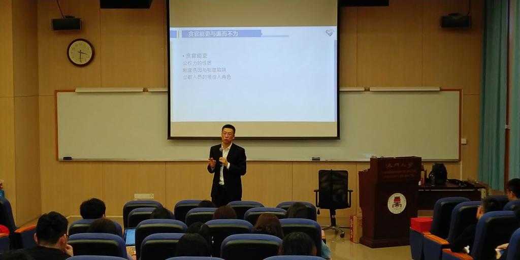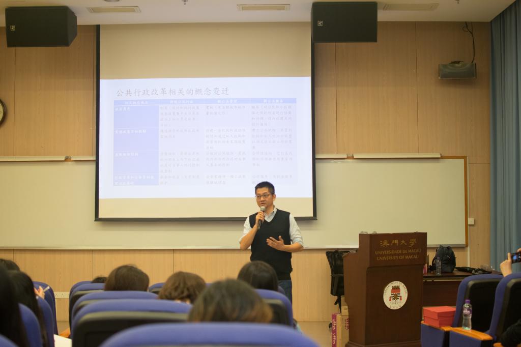11月27日下午,调研团来到澳门大学、澳门社会保障学会访问、调研。期间,两校师生先后聆听了伟德体育刘雪华教授,题为“廉能文化建设:我国廉政建设的新视野”的学术讲座和澳门大学社会科学公司政府与行政学系助理教授陈建新博士,题为“社会变迁对澳门治理的影响”的学术讲座。刘雪华教授介绍了高压反腐下存在的“廉而不为”现象,并从公权力性质,制度诱因和陷阱、公职人员的理性人角色等三个方面分析了其深层原因,探讨了廉能文化建设的必要性及基本路径。陈建新博士以行政改革相关的概念变迁为主要内容,探讨了绩效评估机制、政府规模、政府大数据应用等三个主题。讲座过程中,陈建新博士为在场师生介绍了青岛模式、福建模式、杭州模式、甘肃模式和广东试验等地方政府绩效评估模式,重点对广东试验模式的特点进行了总结。他还介绍了澳门特区政府绩效治理的发展情况,并指出了满意度评价存在的问题。他强调,政府规模小可带动经济增长;体现新公共管理理念的行政改革可提升行政效率;建立“企业型政府”来提升公共服务质量及效率;数据越大、融合性越高,数据的社会效益便越高。在交流环节中,调研团师生分别就政府购买公共服务的种类和范围、累积性满意度调查问卷使用者忠诚指标解读、智慧城市建设与大数据潜在风险等方面内容与陈建新博士进行了深入探讨。