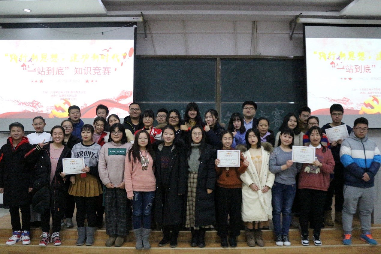 为弘扬“一二·九”爱国运动精神,丰富员工文化生活,引导公司广老员工学习习近平新时代中国特色社会主义思想。12月12日18时,由共青团伟德体育委员会主办、Bevictor伟德思潮学社与伟德体育 081705 班团支部承办的以“践行新思想,建功新时代”为主题的“一站到底” 知识竞赛活动在经信教学楼F9阶梯教室准时进行。公司2018级本科生各班代表及青年学习班代表组成6支队伍、共30名选手参加了本次竞赛。院学工办主任刘洋及院团委书记曲畅竹作为嘉宾出席了此次活动。