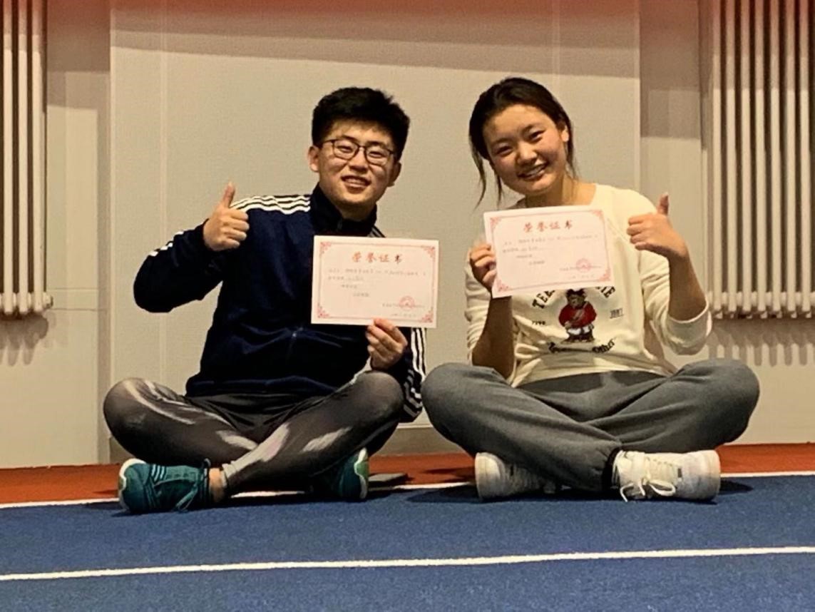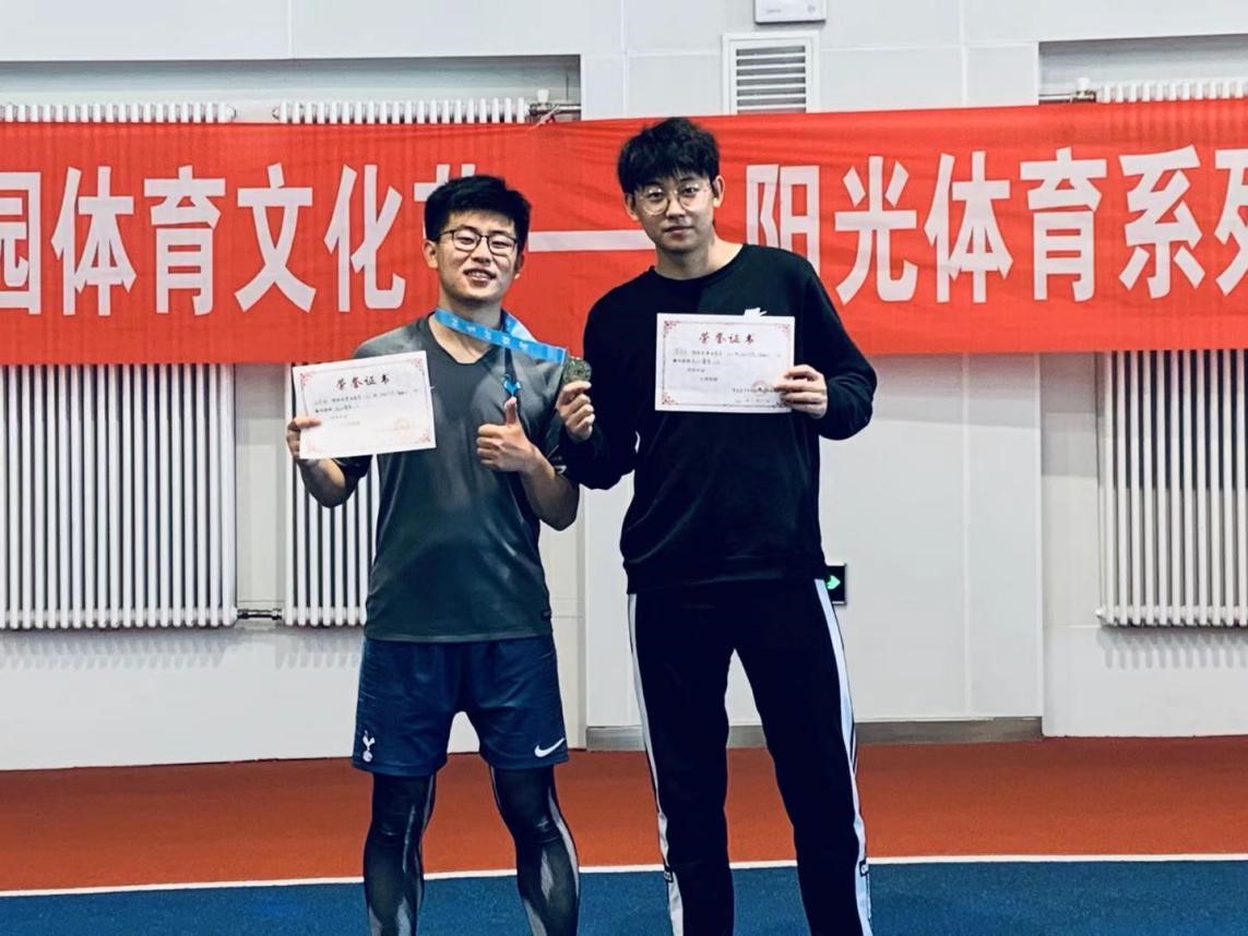 在毽球比赛中,公司张景国(2018级本科生)取得了男子一分钟计数赛亚军,崔玉娇(2019级本科生)取得女子一分钟计数赛第八名,张景国与贺宇实(2018级本科生)取得了男子双人赛团体第六名的好成绩,张景国与田玲(2019级本科生)更是取得混合双人赛团体第五名,收获颇丰。