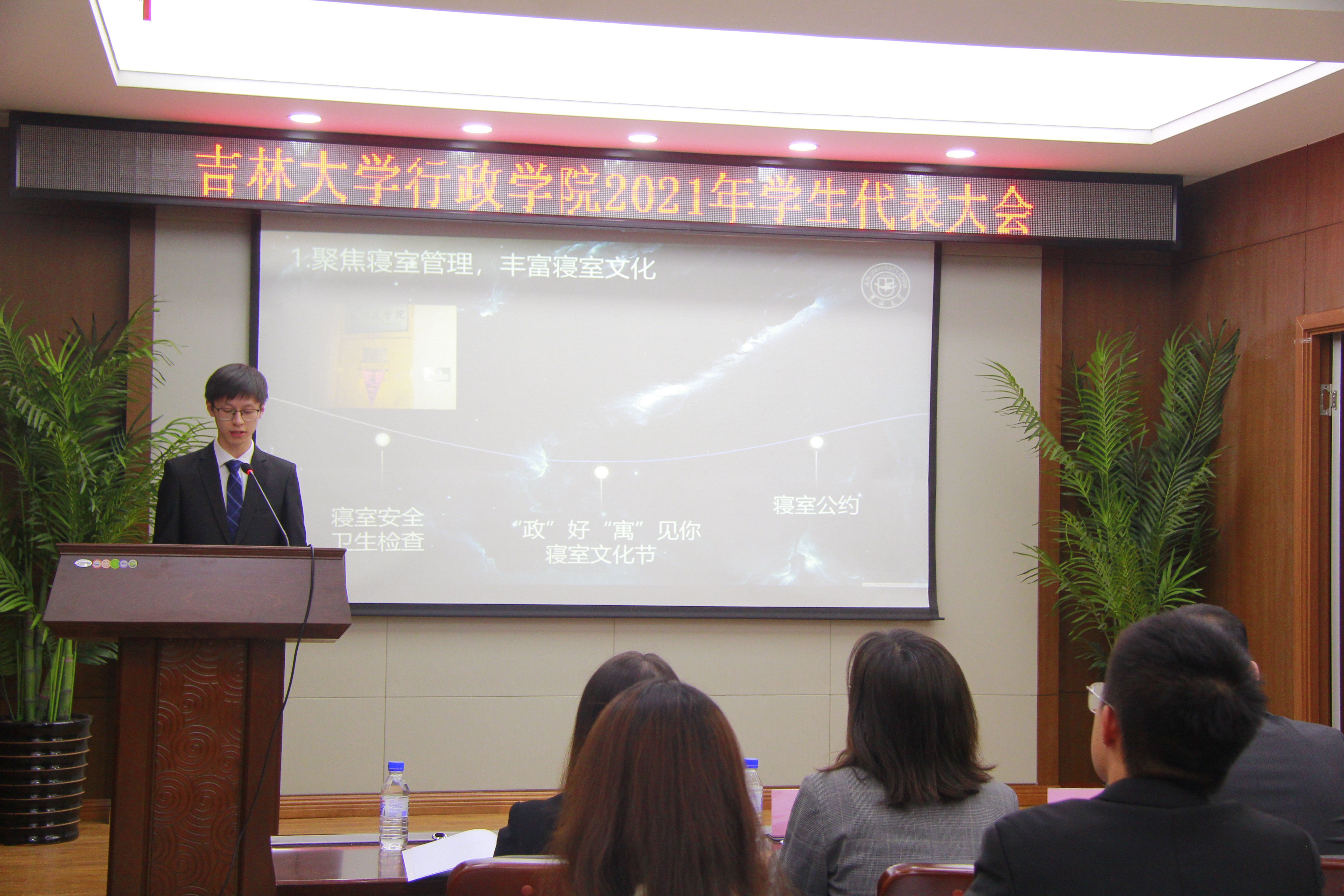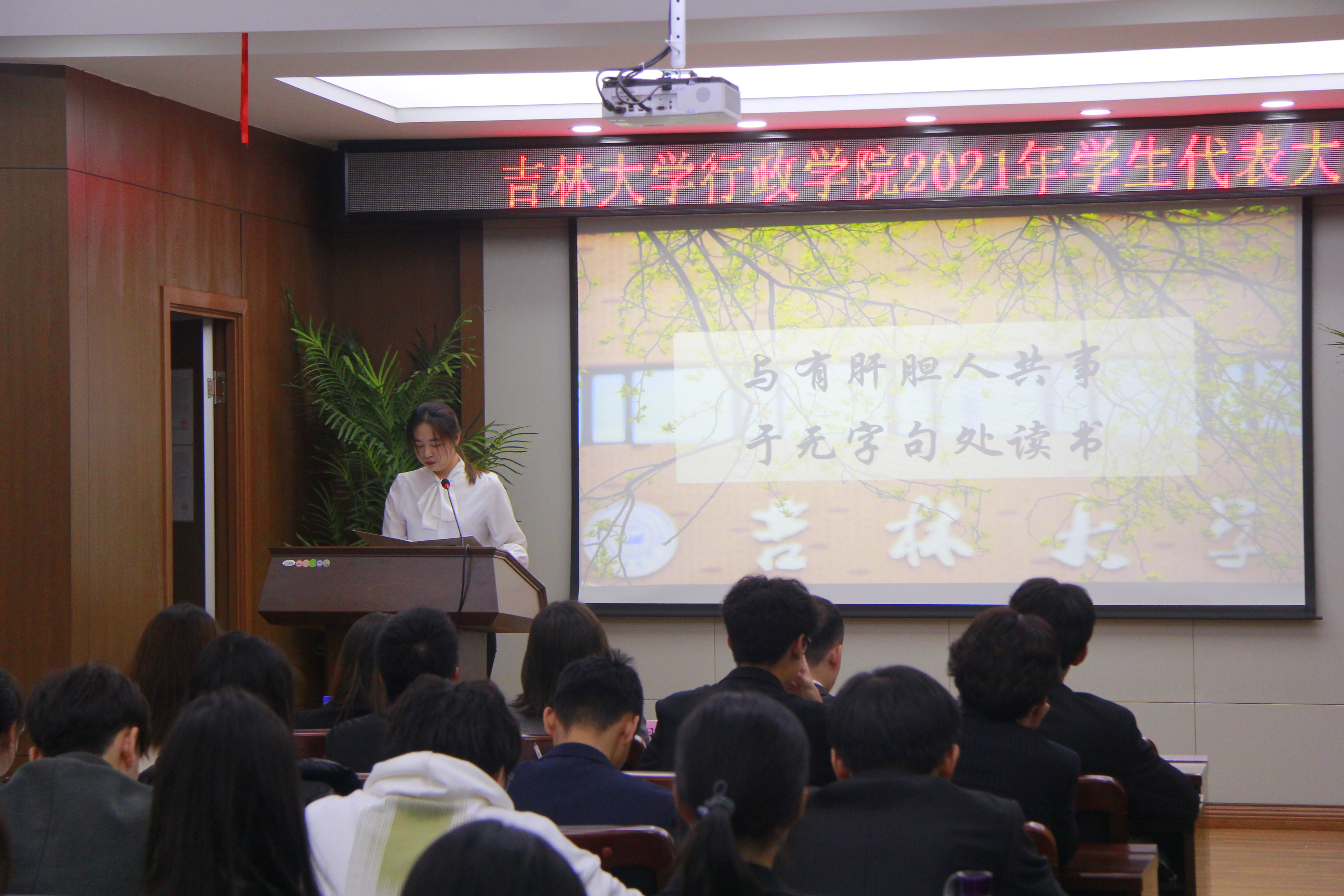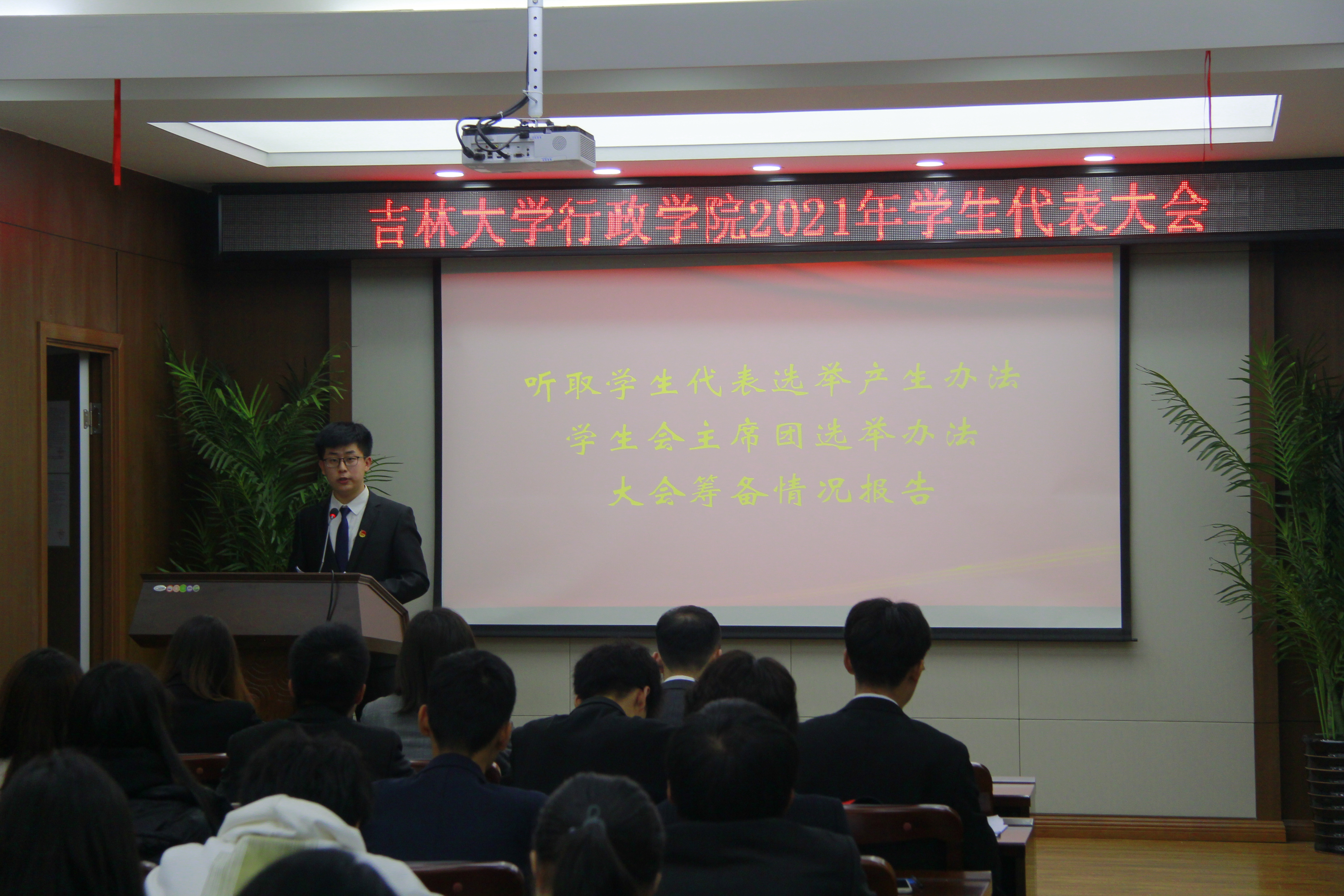 会议伊始,与会人员全体起立齐唱校歌。随后,伟德体育主席团成员张景国向会议宣读员工代表选举产生办法、公司员工会主席团选举办法,并作会议筹备情况报告。公司员工会主席团成员王馨瑶向会议作员工会2020-2021学年工作报告,全面回顾一年来公司员工会的思想政治建设、学术文化活动、志愿服务与社会实践等工作情况。公司员工会一如既往发挥服务同学的作用,在各项活动中表现出色,充分展现了行政学子扎实的专业素养和良好的精神面貌。