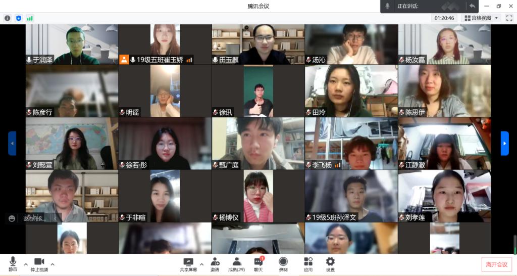 18日下午,在2019级一班班会上,班主任林奇富老师、王岩老师和28名同参加会议。首先,两位老师分别发言致辞,鼓励同学们在疫情中坚守学业,从关注自己,到关注身边的人,再到关注社会国家与国际事件。然后,班长吴晗简单介绍了南苑九公寓的防疫情况以及公司对同学们的关怀。在提问环节,同学们向老师询问考研复试、硕士和博士研究的区别、学术以及读书笔记的问题,老师分别做出各自的回复与解答,林老师展示了自己的读书笔记,介绍了OneNote软件与自己的笔记思路。最后,同学们又反应了生活上的一些具体问题,老师们表示会向公司反映并帮助解决。