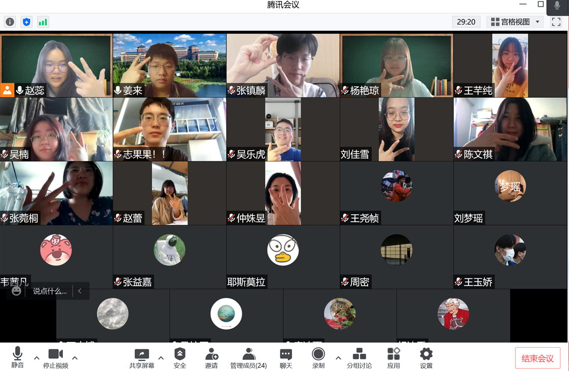 26日晚,在2019级二班班会上,班主任王娜老师与28名同学通过线上腾讯会议的方式开展了本学期第二次班会暨疫情期间心理疏导课。班会伊始,王老师针对第二期班会主题进行发言,活跃班会气氛、提高同学们的讨论积极性。王逸洲、于泽龙同学首先分享了寝室隔离期间室友间的温馨互动以及个人感受,为其他同学提供了隔离期间身心调节的可行经验。在随后的自由交流环节,梁恩昊、黄家琪、于泽龙、王炜冬等多名同学针对寝室隔离期间生活物资采购品类的增加问题提出自身需求并希望公司与公司能够提供相应帮助。王老师认真倾听同学们的心声,及时为同学们提供建议,并表示将向公司进行反馈,帮助同学们解决生活问题。最后王老师向同学们分享自己再封闭管控期间的生活趣事与海外留学期间的丰富见闻,以此鼓励同学们在寝室隔离期间树立积极乐观的心态,潜心认真进行专业学习,不断追求更多的进步,实现自身的远大理想。