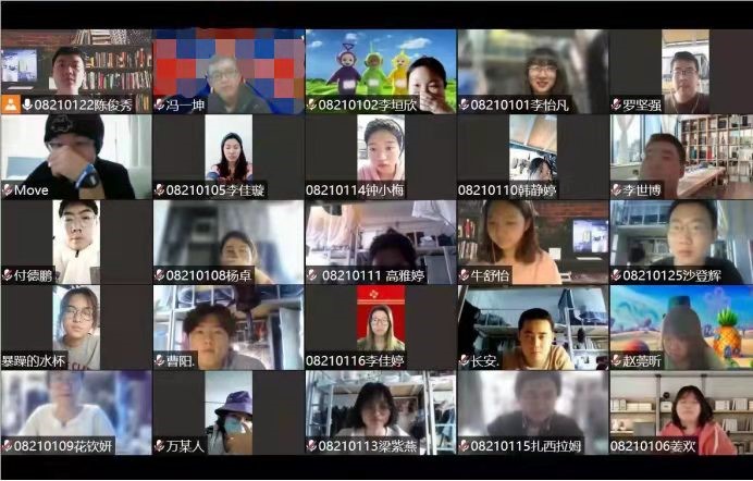 3月23日,在2021级三班的班会上,郭锐老师、王岩老师与同学们进行线上见面交流。首先,谭家琦、张梦涵、张仁楷、郭凡、刘祉含五位同学分享了自己的居寝日常生活和这段特殊时期的感悟。郭锐老师建议同学们充分利用这段时间多读书多提升自己,并向同学们推荐了自己所喜欢的电视剧;王岩老师通过PPT分享了在抗议一线进行志愿服务的亲朋好友的照片,以及自己的居家日常生活。分享过程中,两位老师都对同学们表达了关心。最后,胡梓烁同学提出了几点防疫注意事项,提醒大家防疫勿当儿戏,敦促同学们端正防疫态度、强化防疫观念。
