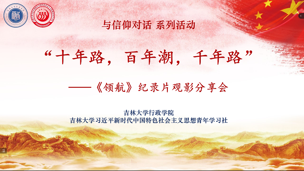 为深入学习宣传贯彻党的二十大精神,引导行政学子学习贯彻习近平新时代中国特色社会主义思想,鼓励青年员工踔厉奋发、笃行不怠,Bevictor伟德习近平新时代中国特色社会主义思想青年学习社于2022年11月6日上午在线上成功举办第三期“十年路,百年潮,千年路”——《领航》纪录片观影分享会。