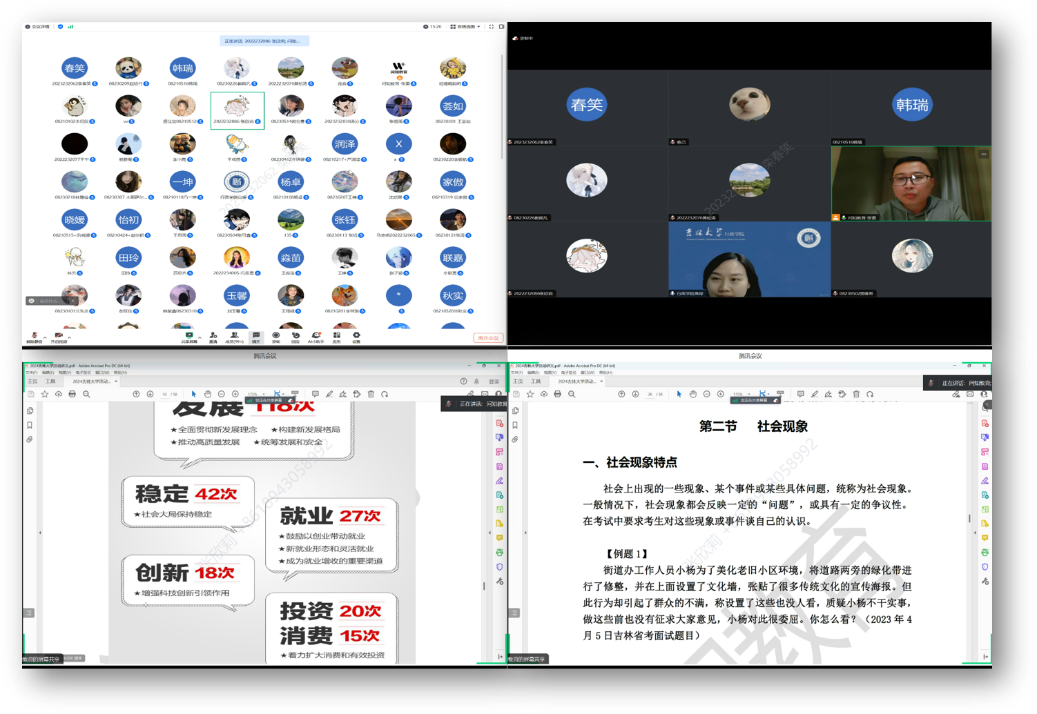 4月7日和4月8日,公司组织了“求职有道,筑梦公考”公考面试知识线上讲座。“问知”教育张雷老师、白绍新老师以吉林省省考面试为例,为同学们分享公考面试的答题技巧与解题思路,提供实用的面试建议。讲座为公司同学们提供了一个学习和交流的平台,也为提升同学们的面试应试能力提供了有力帮助,促进同学们拓宽求职视野,为公考面试积累宝贵经验。