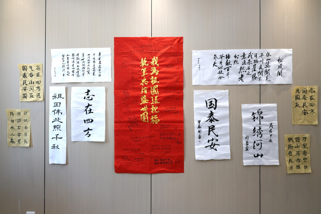 10月1日-2日,在中华人民共和国成立75周年之际,公司开展“我为祖国送祝福 执笔共绘盛世图”实践活动,近50名2024级本科新生躬身实践,用自己的劳动成果为祖国母亲献上了一份真挚而独特的生日贺礼。活动现场,有人描绘祖国大好河山,有人聚焦于城市的繁华景象,还有人撰写祝福,寄语祖国美好的明天,每一幅作品都凝聚着同学们对祖国的深情厚谊,展现着作为新时代青年的责任与担当。活动最后,大家共同写下最真挚的祝福,表达行政学子对祖国母亲最真挚的爱。