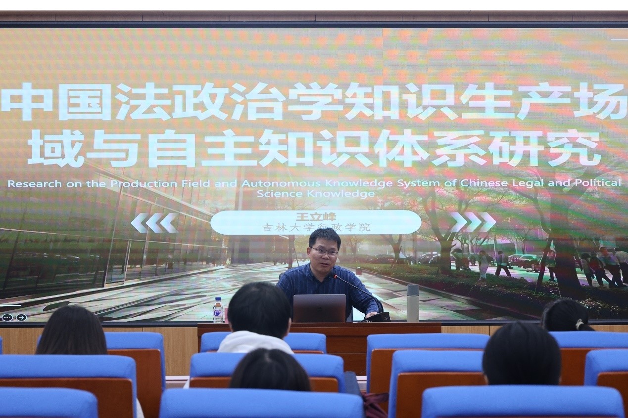 王立峰以《中国法政治学的知识生产场域与自主知识体系》为题进行讲授,指出法政治学是法学与政治学的交叉学科,融汇了法学与政治学的两大学科资源,其知识生产离不开法律场域与政治场域的相互作用。中国法政治学构建需观照中国现实,并从意识形态、民主政治、党政体制、法治道路、中国式现代化五个维度进行具体分析。王立峰强调自主知识体系建构的重要性依赖于原创性、衍生性和新诠性标识性概念。在学术体系上,权利与权力关系是核心,需制度化交织,方法论应思辨、实证、经验并重。王立峰提出,要系统化建设法政治学教学、团队、课程,培养复合型人才,倡导以马克思主义为指导,构建中国特色知识体系,助力中国法治与治理现代化。