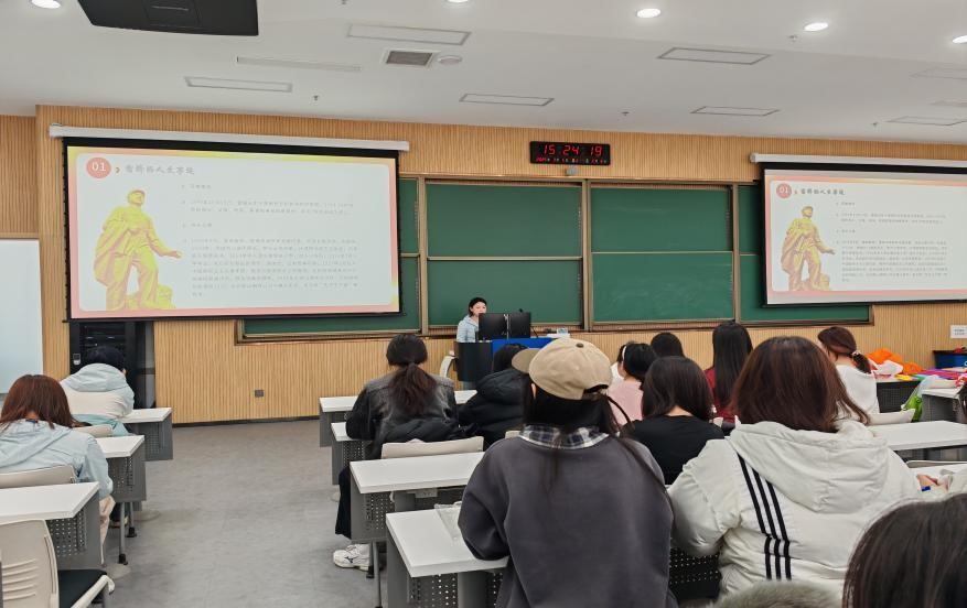学习解读环节。唐若菲(2024级本科生)、安柏琪(2024级本科生)针对雷锋事迹进行重点概括与提炼,带领全体同学重温雷锋同志生平事迹,集中学习《雷锋日记》经典片段。通过沉浸式学习,同学们深刻感悟雷锋同志“把有限的生命投入到无限的为人民服务中去”的崇高理想。