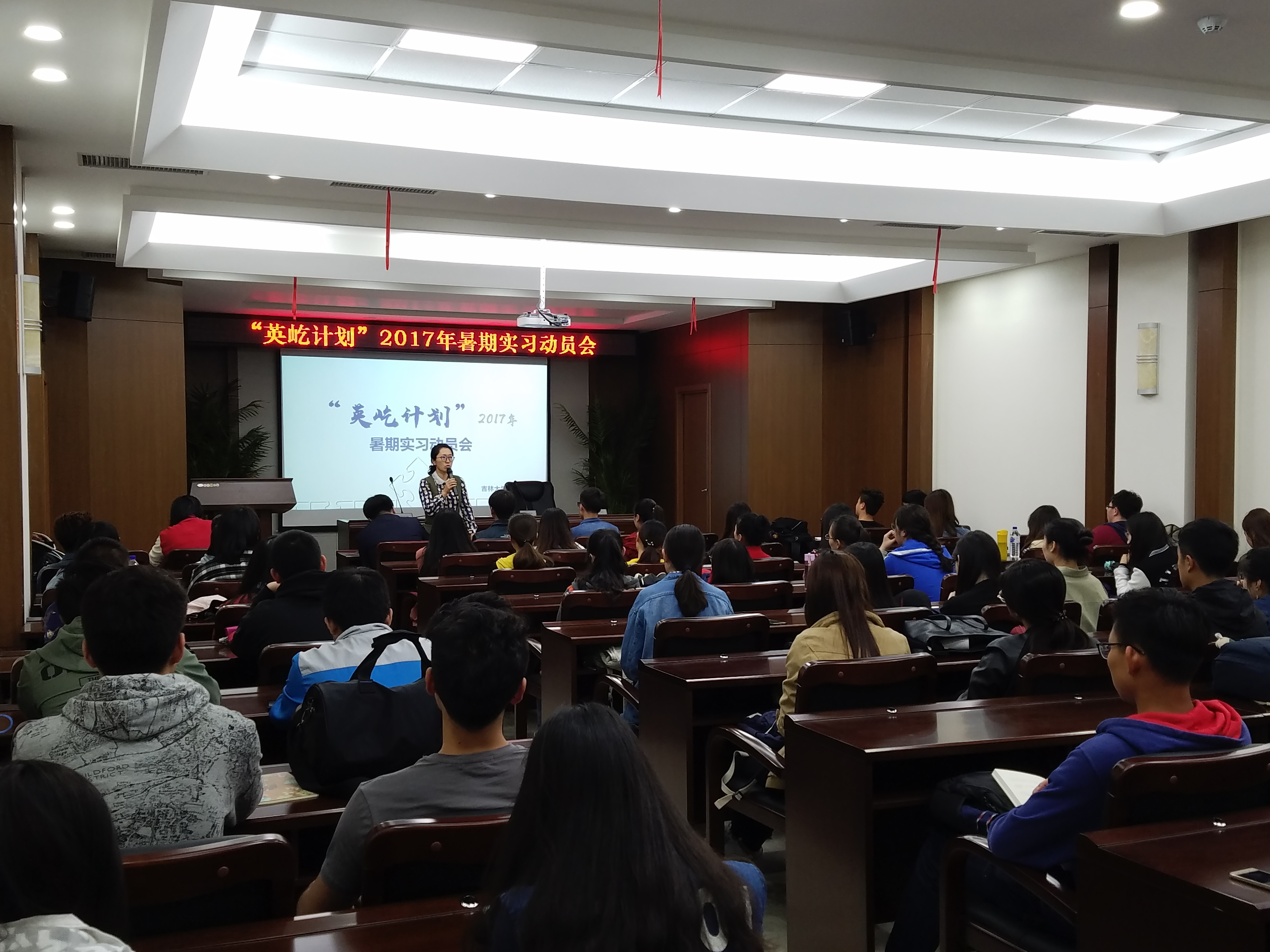 动员会上,史慕华老师详细介绍了“英屹计划”设立的初衷、进展和今年的创新点。针对今年“英屹计划”中设计的“职业导师制”,她结合去年实习同学的案例,从职业导师选聘、职责和师生沟通等方面,向同学们做了详细说明。她还悉心叮嘱加入今年“英屹计划”暑期实习的同学们要从思想和行动上高度重视自己的人身和财产安全,积极加强同地实习同学间的密切联系和相互帮扶。随后,曲畅竹老师公布了今年“英屹暑期实习计划”的分组名单,并勉励同学们在今年的暑期实习中有所收获和成长。