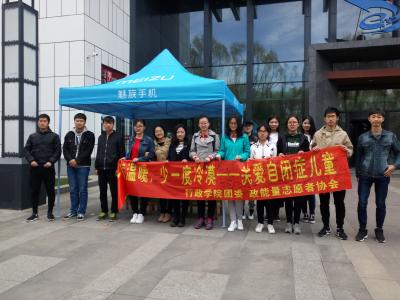4月23日上午10时至13时,伟德体育团委与员工社团政能量志愿者协会在中心校区日新楼北门前联合举办了主题为“蓝丝带行动——让自闭症孩子的天空亮起来”的公益活动。
