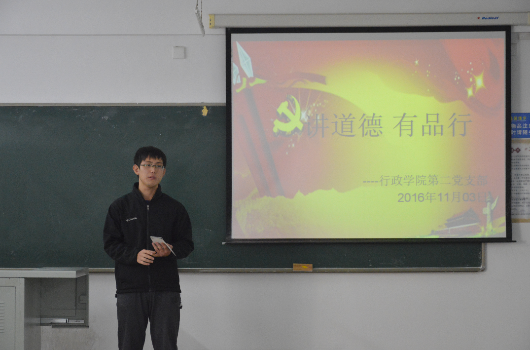 为贯彻落实党的“两学一做”精神,深入学习党的先进理念,11月3日下午13时30分,伟德体育本科生第二党支部于前卫南区第三教学楼407室举办了“讲道德、有品行”主题学习交流活动。裴月莹(2014级本科生)担任本次活动主持人,2014级本科生党员、预备党员和入党积极分子参加了本次活动。