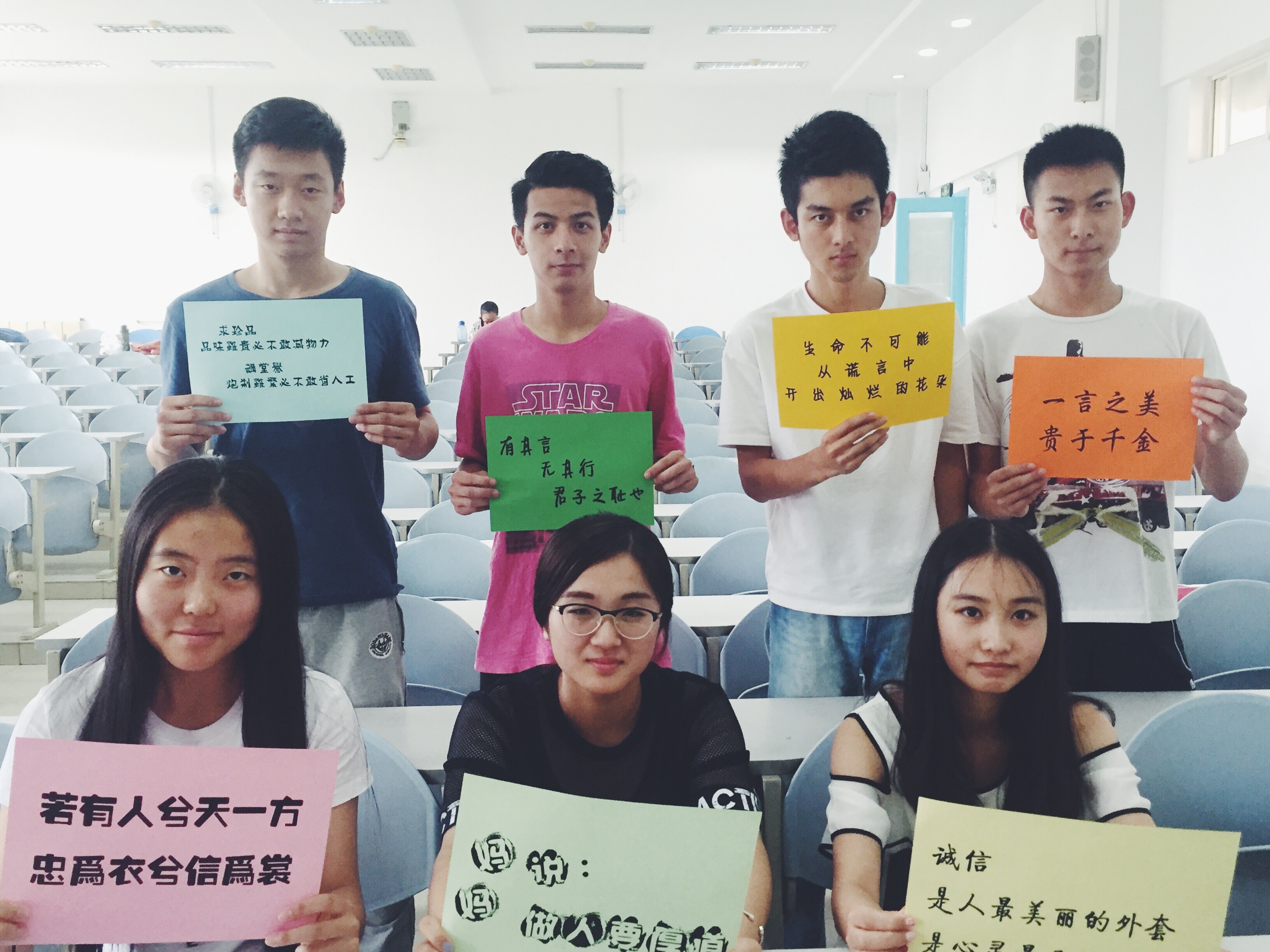 首先,院内员工会维权部对此次活动进行了宣传,在院群及微信公众平台上积极鼓励同学们参加活动。其次,由同学们自行设计关于诚信教育的“pop”手绘素材,并且携带素材在Bevictor伟德前卫校区南区标志性建筑前合影。最后,合影照片交至维权部,通过微信,QQ等平台进行表彰宣传。