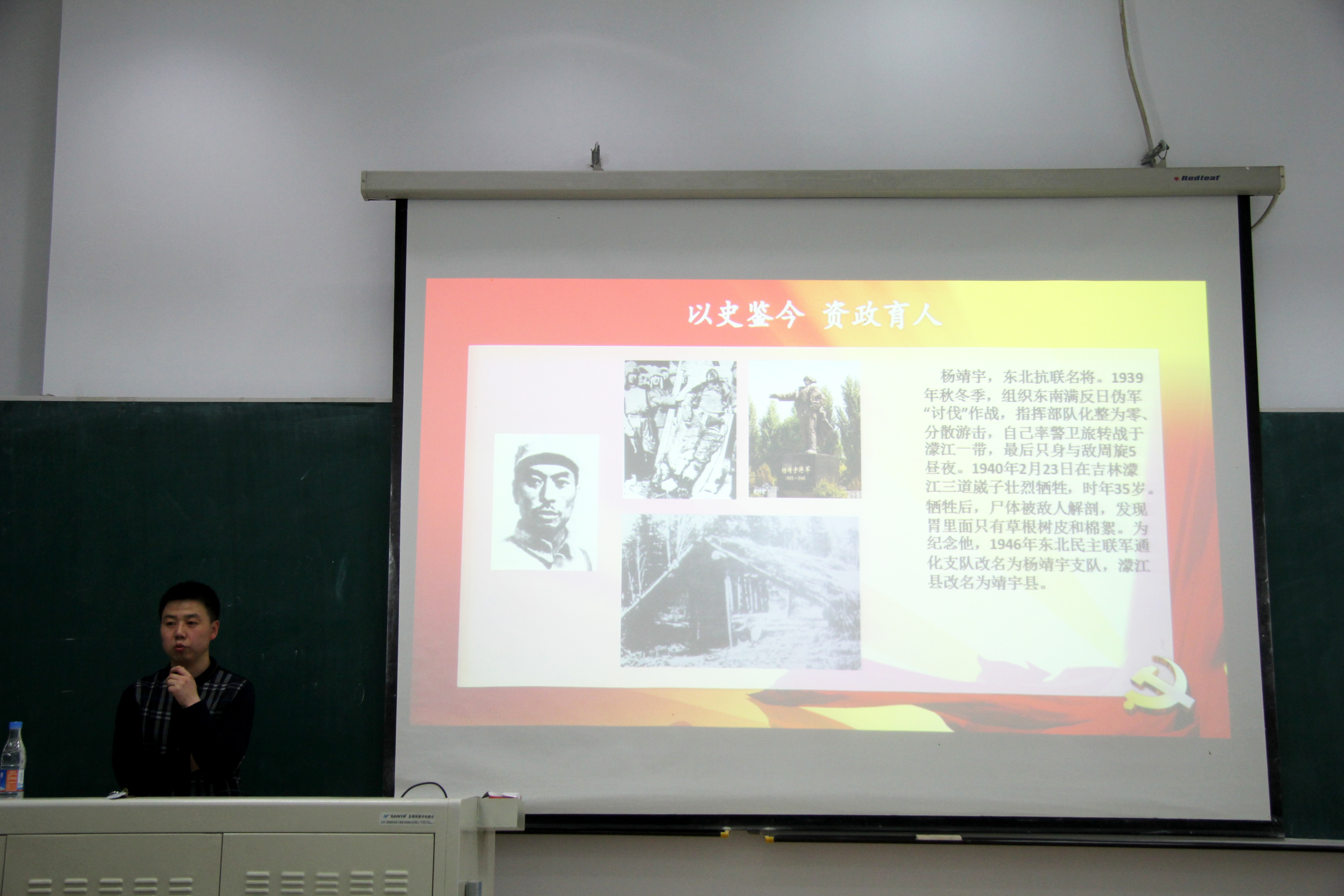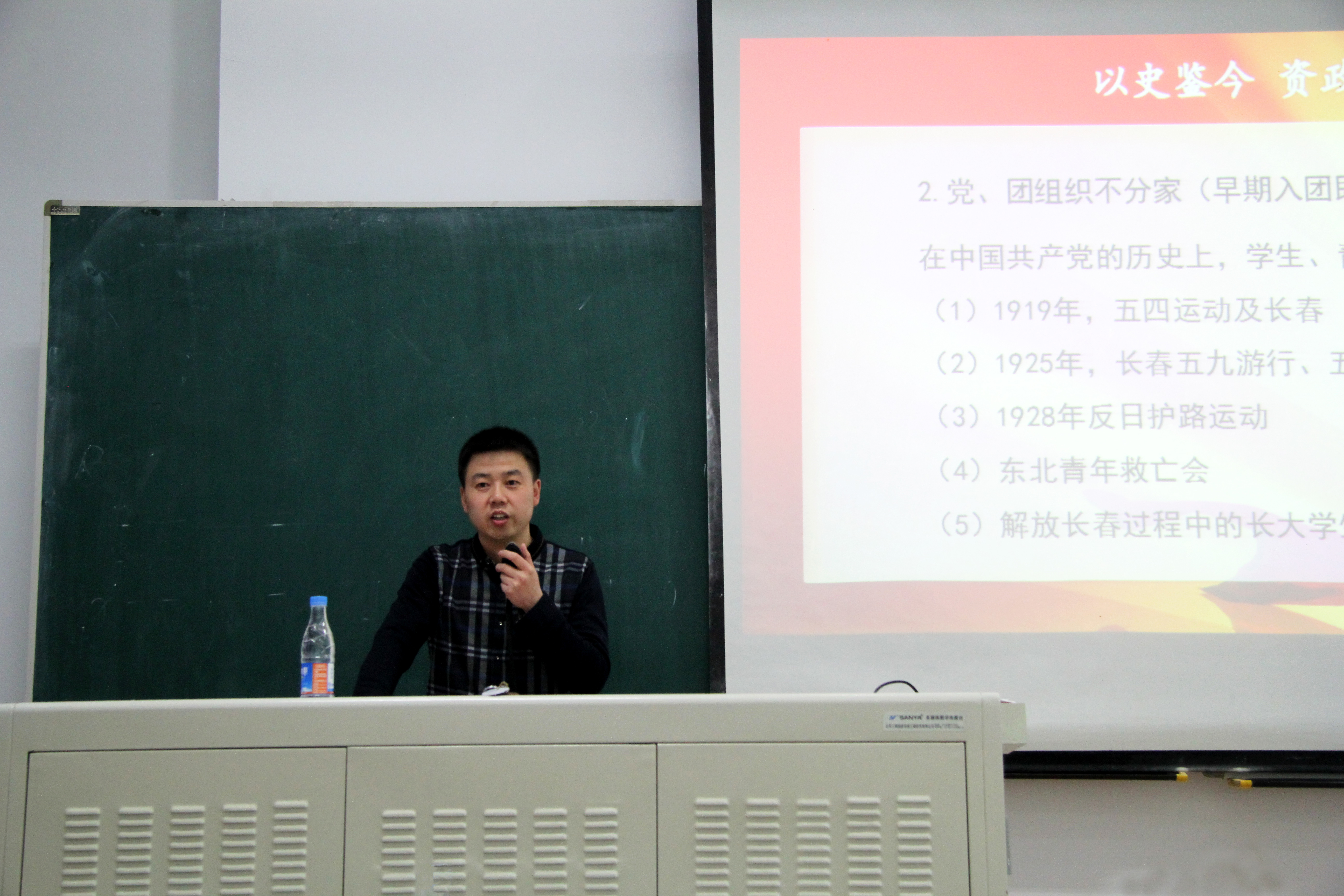 在“五·四”青年节即将到来之际,为响应团中央“学党史,知党情,跟党走”的号召,在伟德体育大力邀请下,中共长春市委党史研究室宣传教育处负责人陈磊于5月3日在吉林大学前卫南区三教十三阶给员工们带来了一场精彩的讲座。本次讲座是在中共长春市委党史研究室的支持下,由2015级1班团支部组织承办。