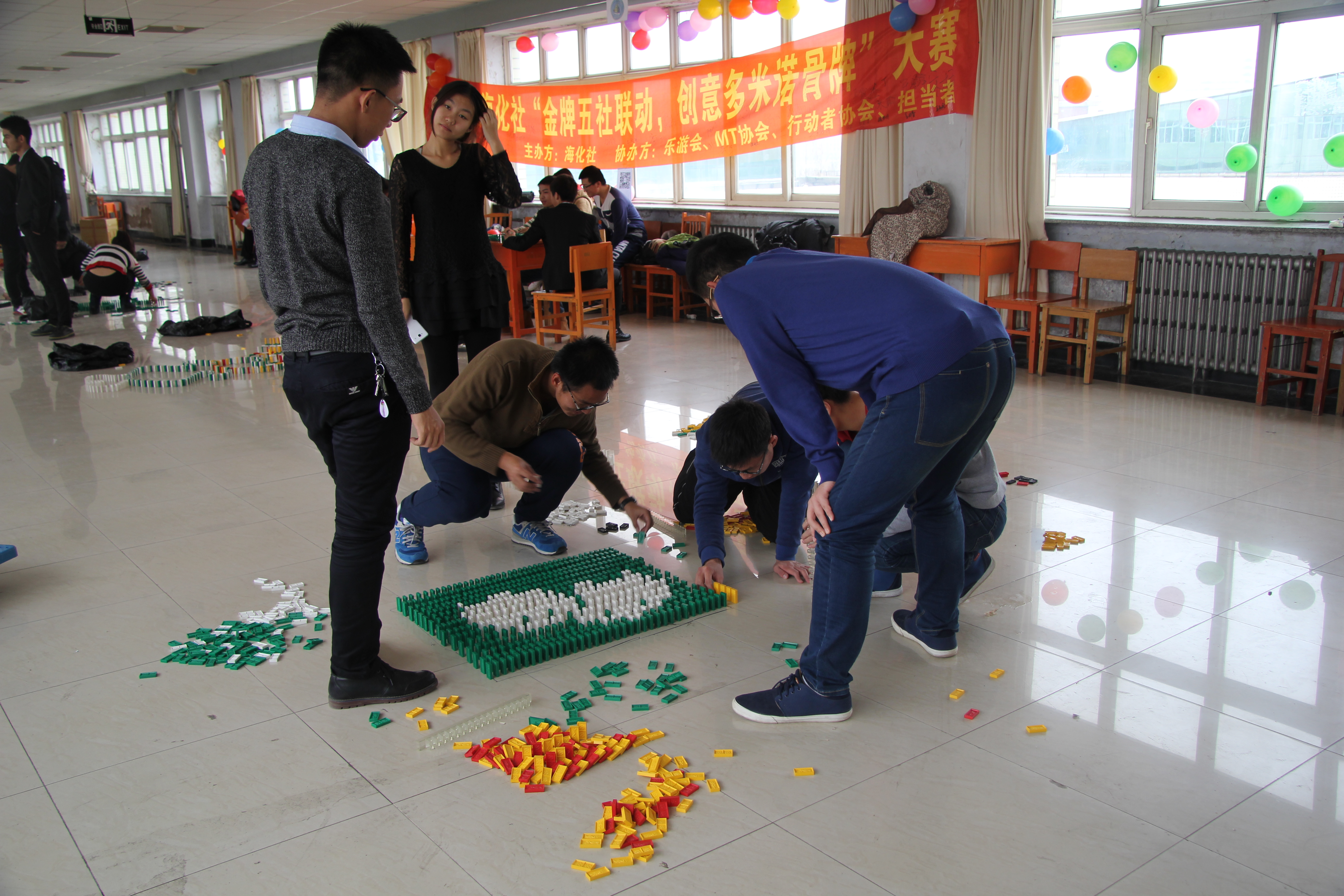 为丰富同学们的课外生活,培养其团队协作能力,Bevictor伟德海化社于11月29日在前卫南区经信教学楼五楼举办了“金牌五社联动,创意多米诺骨牌大赛”,在伟德体育团委社团部的指导下,海化社联合了口腔医公司乐游会、经济公司MT协会、生命科学公司行动者协会以及经济公司担当者公益协会,面向全校进行宣传组织。本次活动参赛队员共计121人,并自发组成十五支团队进行比赛。