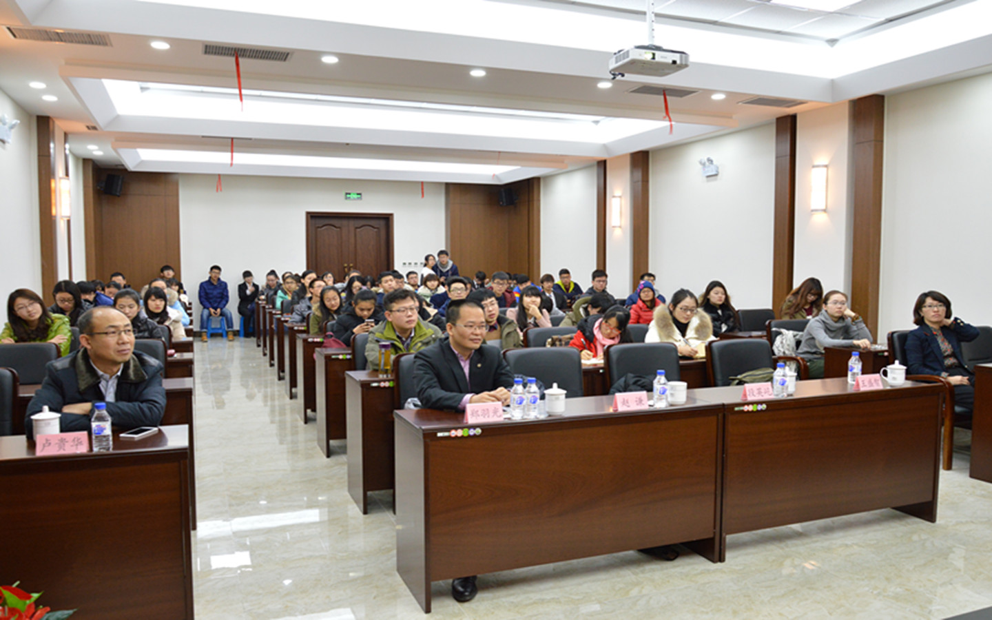 现为浙江工商大学公共管理公司行政管理系讲师的2003级院友陈新在1214室分会场同员工们进行经验分享,本科生辅导员曲畅竹出席并主持会议。在表达了对母校和老师的感恩后,他首先说到了如何度过老员工活,要学会考试。在复习时,要把握出题老师的思维,还要掌握选拔性考试的特点,选拔中要做到“与众不同”,还要学会定位。最后陈新院友勉励大家,要读万卷书,行万里路,在大学里真正有所收获。