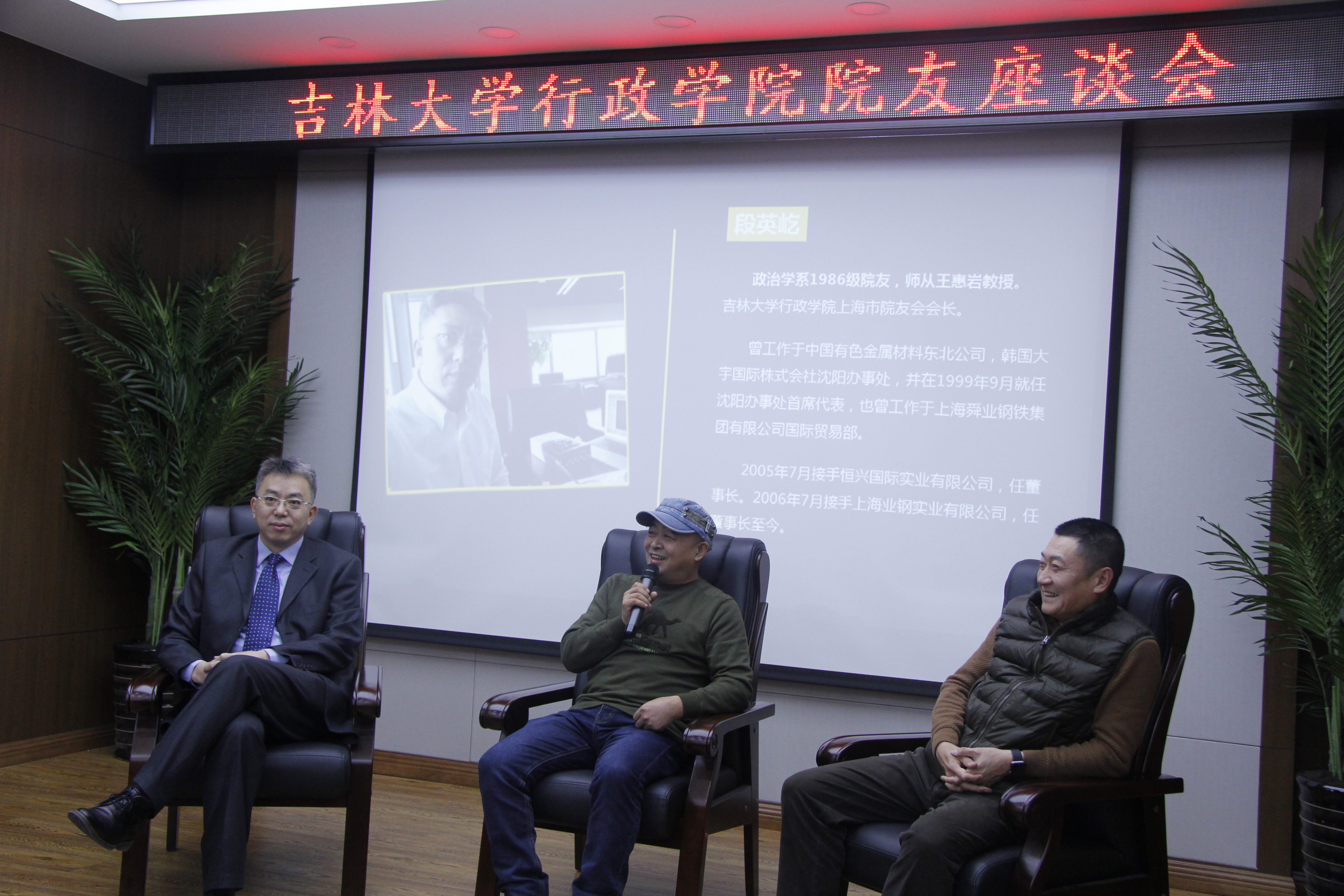 首先发言的是现任导演,音乐制作人,文化传播公司老总的1984级院友王盛智。他回忆了自己在大学求学和自己工作后打拼的一些故事。他从小就对音乐感兴趣,因为喜欢,靠着坚持,真正把兴趣变成了职业。他特别谈到,坚持和学习在工作中的重要性,还通过分享自己在广州打拼的一段较为艰难的经历来告诉大家坚持的意义。而政治学教给他的独特思维模式也使他在后面的路上走得越来越远。