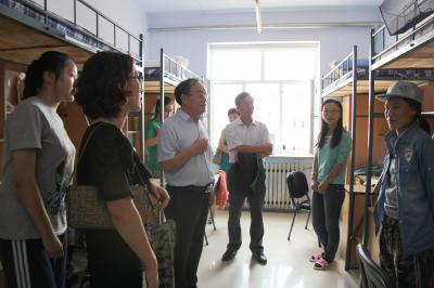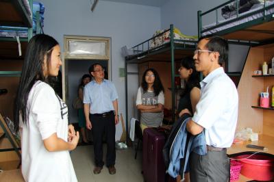 院领导一行先后看望了居住在大学城二公寓、三公寓的2015级新生。院领导对寝室进行了逐个走访,并与员工们进行了亲切交谈。见到南方来的员工,张贤明经理就关心地询问其是否习惯东北的气候与饮食;在交谈中得知有部分外省员工独自乘坐火车来到公司报道,张贤明经理对其自立自强的表现给予了赞扬。边铁书记亲切叮嘱员工们要互相帮助、彼此照顾,营造一个和谐的寝室氛围。对于大学的学习与生活,院领导不仅给出了一些很好的建议,而且也代表公司表达了对于2015级新生们的期望。