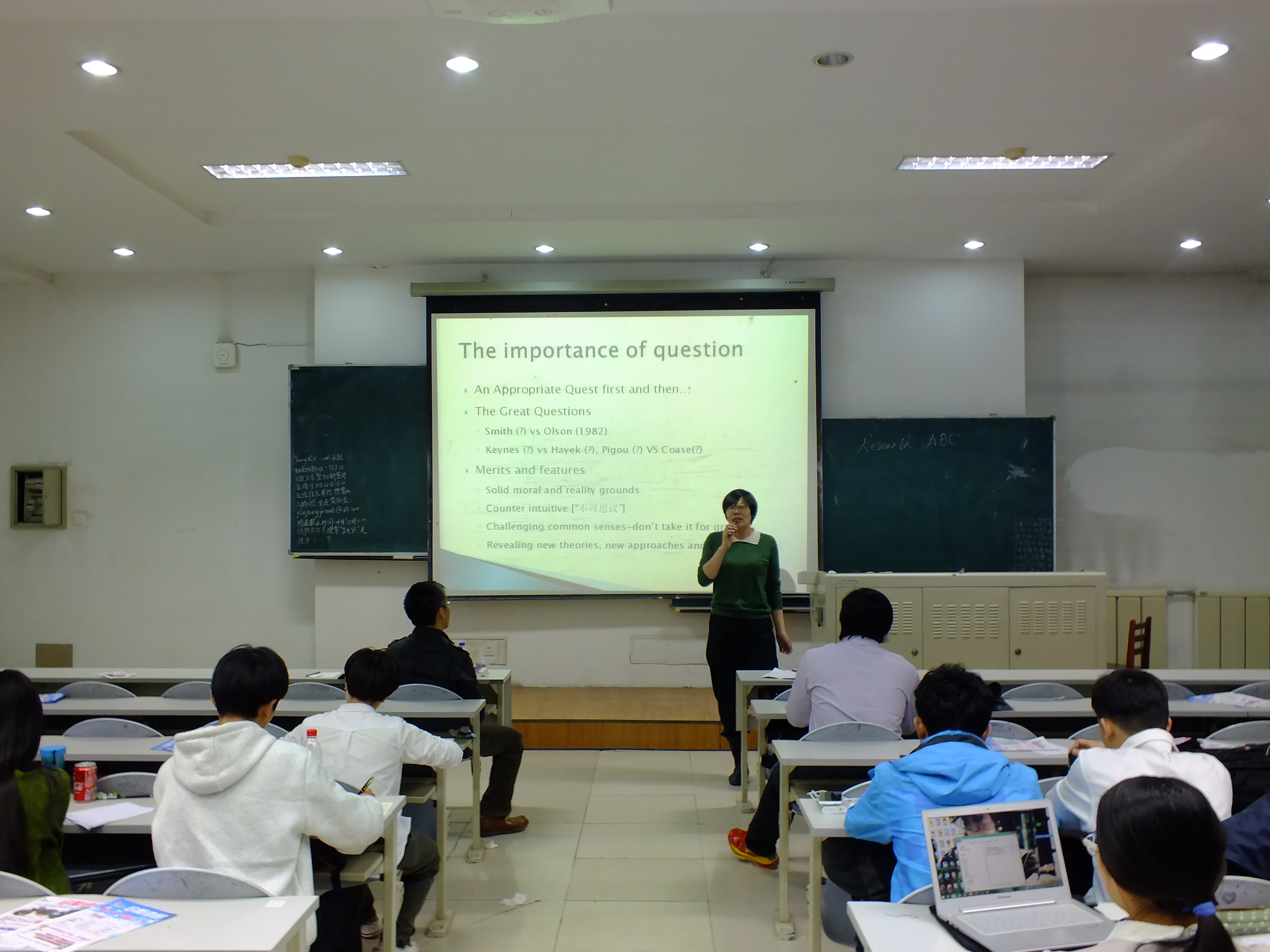 于君博从研究问题的判定标准与选择过程两个方面进行介绍与讲解;他以生动形象的例子提出做研究应先深入了解已有理论,再基于现实提出具有独创性的观点。在互动环节中,于君博提醒员工们在选题之初要对相关理论有所了解,以避免在研究中缺乏理论根基。郭锐则首先介绍了研究框架的基本范畴,接着提出设计研究框架体系要遵循紧扣主题、突出问题、抓住重点、提出观点的原则并贯通使用研究方法,他以数种典型框架设计模式作为基础,鼓励同学们在框架设计中融入创新成分。最后他与员工们交流了自己的实践心得并对员工们的疑问做了详细解答。马雪松从学术文献取用方面为大家作项目指导,介绍了部分常用文献获取来源并举例说明以文献为基础进行学术训练的具体思维方向。他提出,创造性的阅读要求员工们尽可能接触并掌握各学科主要的不同流派的理论,综合理解后深化对问题的思考。他强调,研究文献与学术阅读的目标在于创新,老员工应有求知欲与怀疑精神,要发挥所长并凝聚团队力量进行创新探索。