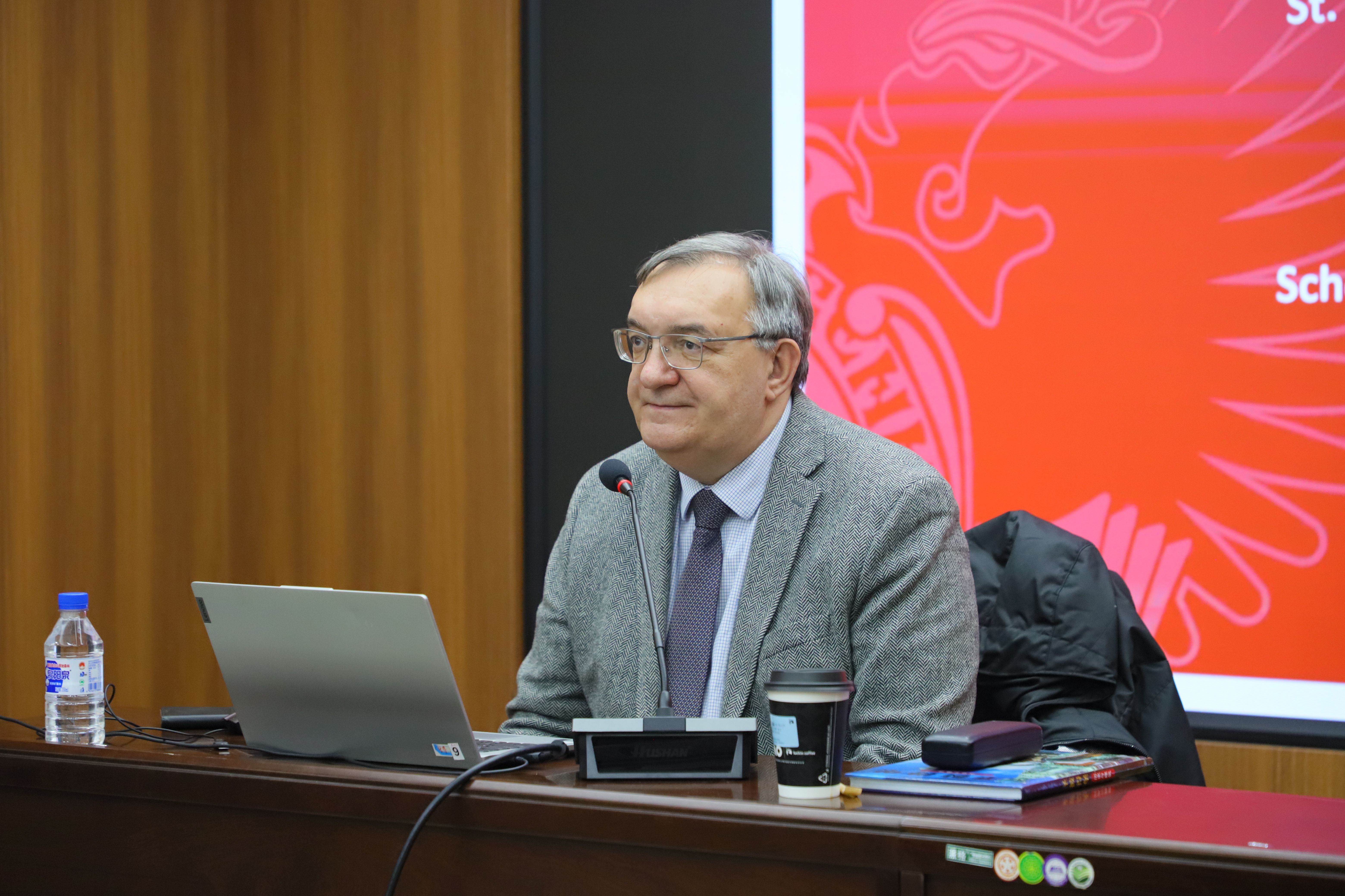 2024年10月31日下午,公司举办的国际事务工作坊(第26期)学术讲座在东荣大厦B303会议室举行。本期工作坊邀请俄罗斯圣彼得堡国立大学国际关系理论与历史教研室教授亚历山大·谢尔古宁(ALEXANDER SERGUNIN)担任主讲嘉宾,进行题为“上海合作组织框架下的中俄合作(Sino-Russian Cooperation in the Frame of the Shanghai Cooperation Organization)”的学术报告。本期工作坊由公司国际政治系讲师许宁主持,公司师生约40人次参与本次活动。