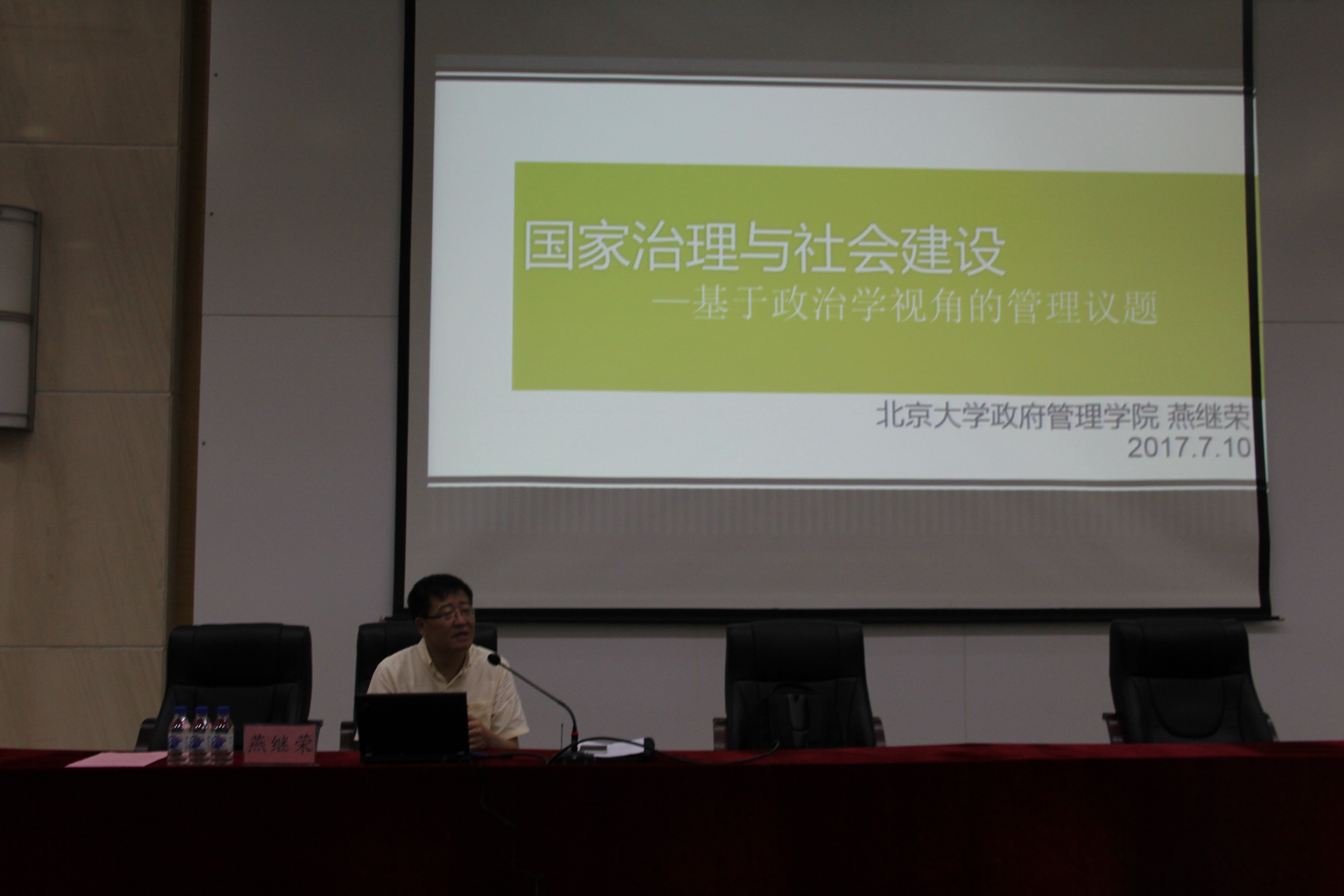 接着,全国MPA教指委副主任委员燕继荣教授为大会做基调报告。燕教授结合我国MPA教育事业的发展历程、面临的挑战以及MPA教指委的性质与任务,分析了MPA人才培养的目标与要求。燕教授同时结合自己多年的学术研究经历与我国目前面对的新党情、国情、社情,深入浅出地阐释了MPA员工应具有的“公共精神、法治理念、国际视野”的内涵与外延。