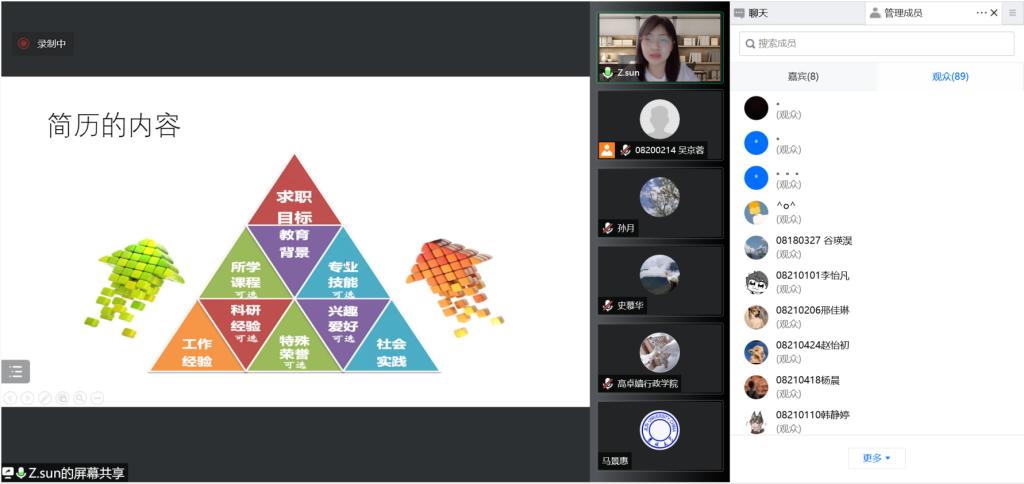 会上,同学们积极与老师互动,就HR浏览简历用时、简历照片选择、薪资条件选择等进行了交流,在老师的引导下学会从HR的思维角度来审视自己的不足,找准努力方向。本次宣讲生动有趣、视角新颖,全程互动活跃,内容丰富全面、实用有效,为同学们求职就业提供了详细深入的指导与重要经验参考。