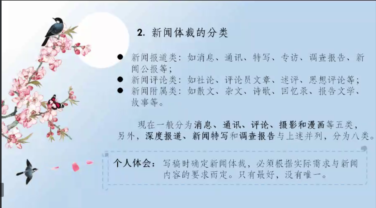 消息写作是新闻写作的基础,段为围绕“如何识别新闻体裁”、“什么是消息”、“消息怎么写”三个主题下的消息写作进行展开讲解,针对标题、导语、主体、背景、结尾的特点进行具体解读。新形势下的新闻宣传工作呼吁创新,段为通过五篇新闻资料,引导与会同志在例证中体会消息“倒金字塔结构”和“非倒金字塔结构”的不同之处,鼓励与会成员们尝试用新的方法写出更富有新意和可读性的故事。最后她指出,消息要满足读者的需要,应当站在读者的立场上撰写稿件,强调内容与主题的一致性。