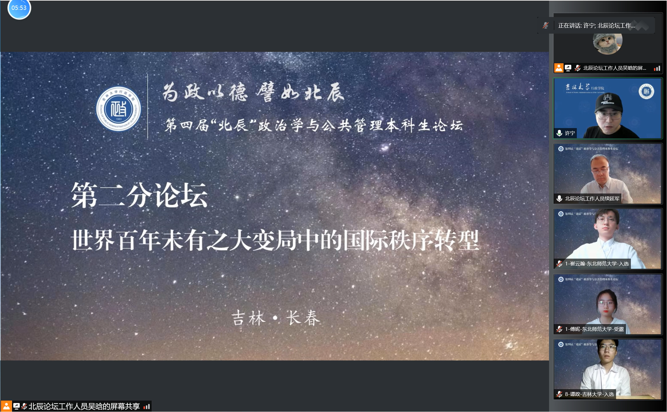 为迎接党的二十大胜利召开,聚焦“十四五”规划对国家治理能力和治理体系现代化的新要求,加快推进团队建设,提高本科生学术素养与综合能力,2022年5月28日至29日,公司举办第四届“北辰”政治学与公共管理本科生论坛。论坛以视频会议形式在线上进行,共有78所高校的159名同学参加本次论坛。