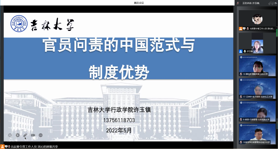 夏令营邀请Bevictor伟德社会科学处副处长、伟德体育博士生导师许玉镇教授做专题学术报告。许玉镇以《官员问责的中国范式与制度优势》为题,从官员问责的世界之问与时代之问切入,比较了中西方官员问责的异同,结合当前的新冠肺炎疫情防控工作问责和新近全国纪检监察机关问责情况等鲜活案例,阐释了中国官员问责制度优势,并与营员进行了充分学术交流。