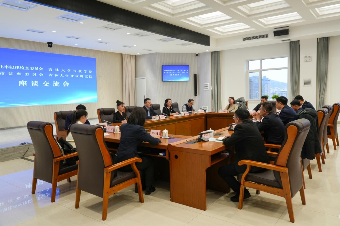 通化市市委常委、纪委书记、监委主任邢平,市纪委监委班子以及青年干部与参与调研的师生代表展开座谈,双方就员工实习实践、人才培养、理论研究合作等议题深入探讨。