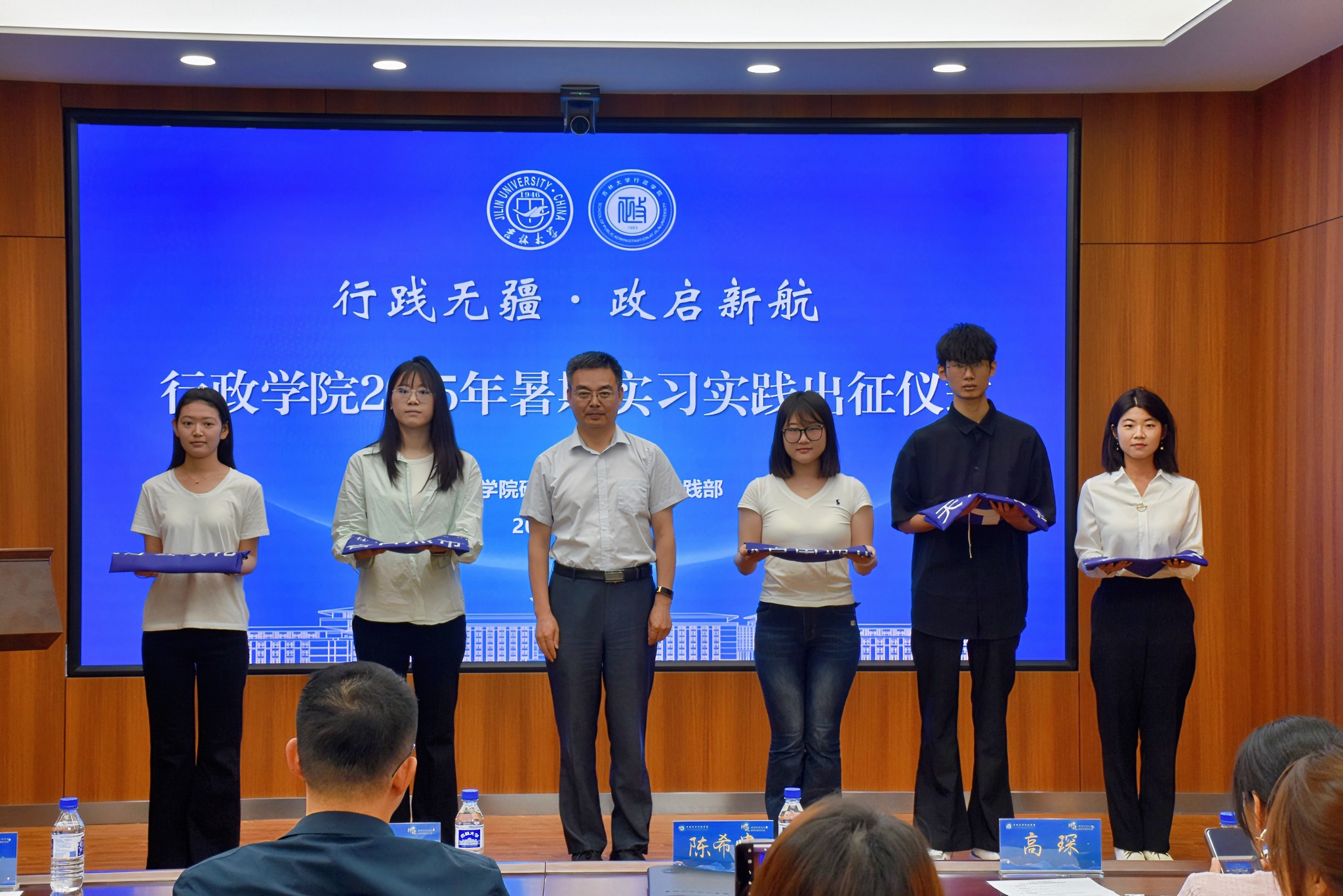 仪式上,陈希贵为5位实践基地员工代表授旗,象征着责任与期望的传递。