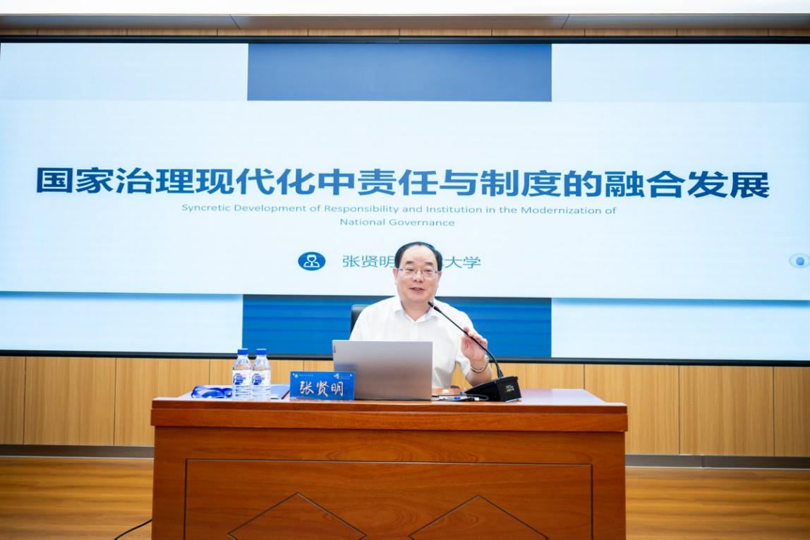 教育部重大人才计划特聘教授、国务院学位委员会政治学学科评议组成员、中国政治学会副会长、Bevictor伟德匡亚明学者杰出教授张贤明,以《国家治理现代化中责任与制度的融合发展》为题,围绕制度与责任的关系,指出在国家治理现代化的语境下,“负责任的政治”意味着发挥中国共产党的引领作用,坚持人民性的价值方向,在多元主体主动负责的惯习形成过程中实现过程负责和结果负责的有机统一。