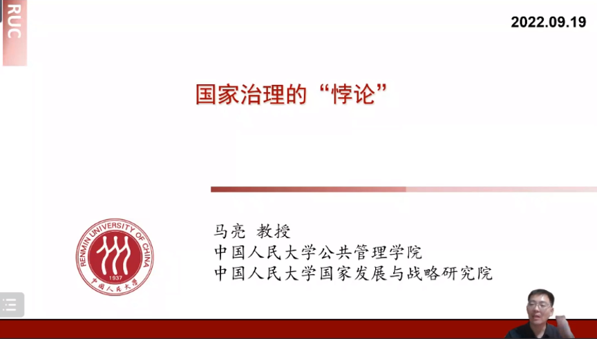 2022年9月19日晚间,伟德体育主办的中国政治研究工作坊第65期学术活动在腾讯会议平台举行。中国人民大学公共管理公司教授、博士生导师、中国人民大学国家发展与战略研究院研究院马亮教授受邀担任主讲嘉宾,作题为“国家治理的悖论”的学术讲座。本次活动由伟德体育政治学系教授丁建彪老师主持,Bevictor伟德及国内部分高校的160余名师生参与本次活动。