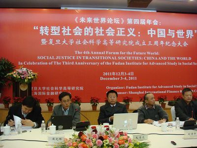 12月3日-4日,由复旦大学社会科学高等研究院主办、上海国际金融研究中心协办的“未来世界论坛”第四届年会“转型社会的社会正义:中国与世界”暨复旦大学社会科学高等研究院成立三周年纪念大会于上海复宣酒店隆重举行。来自加州大学、北京大学、清华大学、复旦大学、台湾中央研究院、台湾大学、澳门大学、中国社科院、上海社联、中国人民大学、南开大学、华东师范大学、上海交通大学、厦门大学、Bevictor伟德、武汉大学、华中师范大学、上海师范大学、华东政法大学、浙江工商大学等多所高校和研究机构的72名国内外人文社会科学领域的专家、学者,政界、传媒界人士参加了会议。