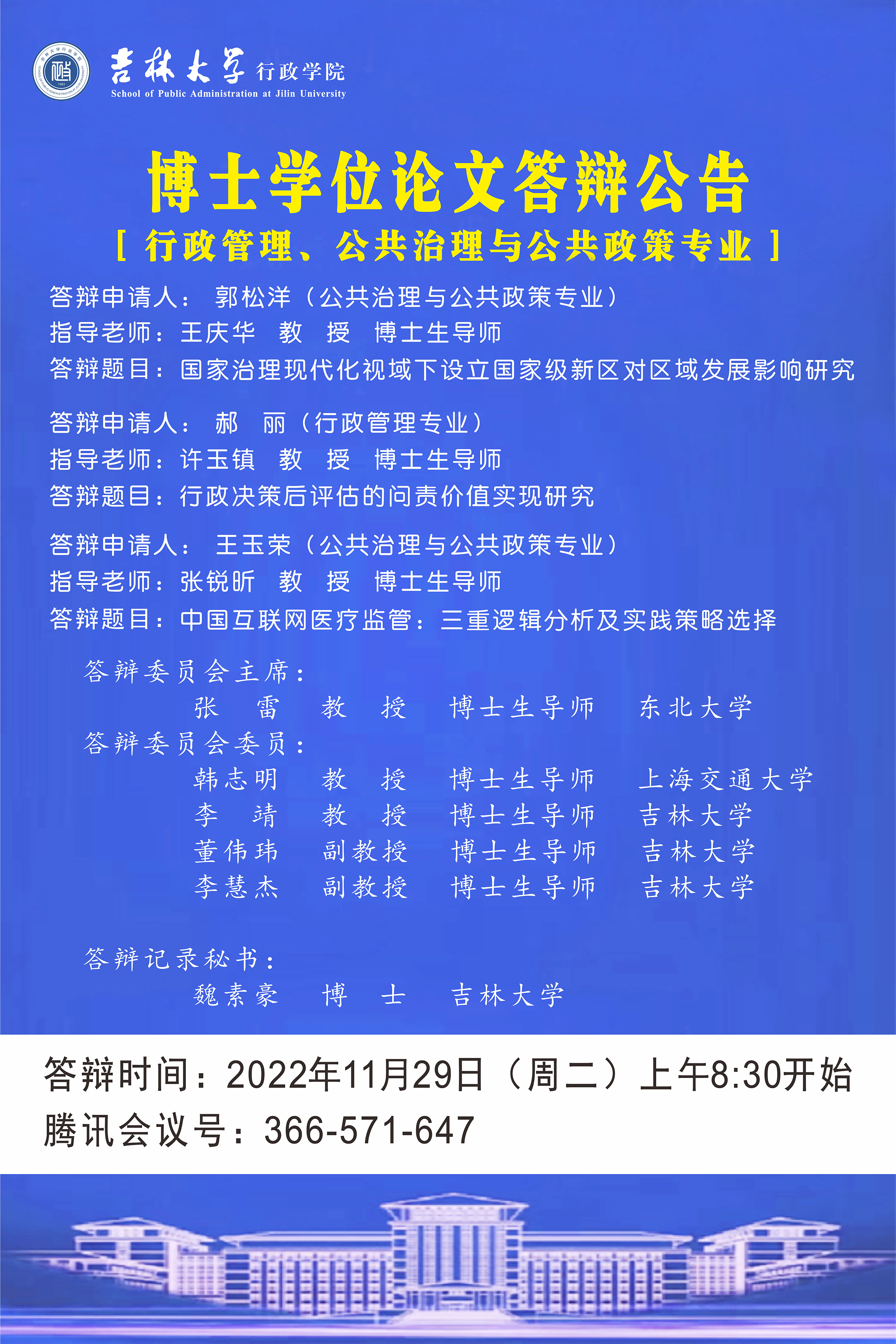 2022年11月29日(周二)上午8:30开始(行政管理专业、公共治理与公共政策专业)