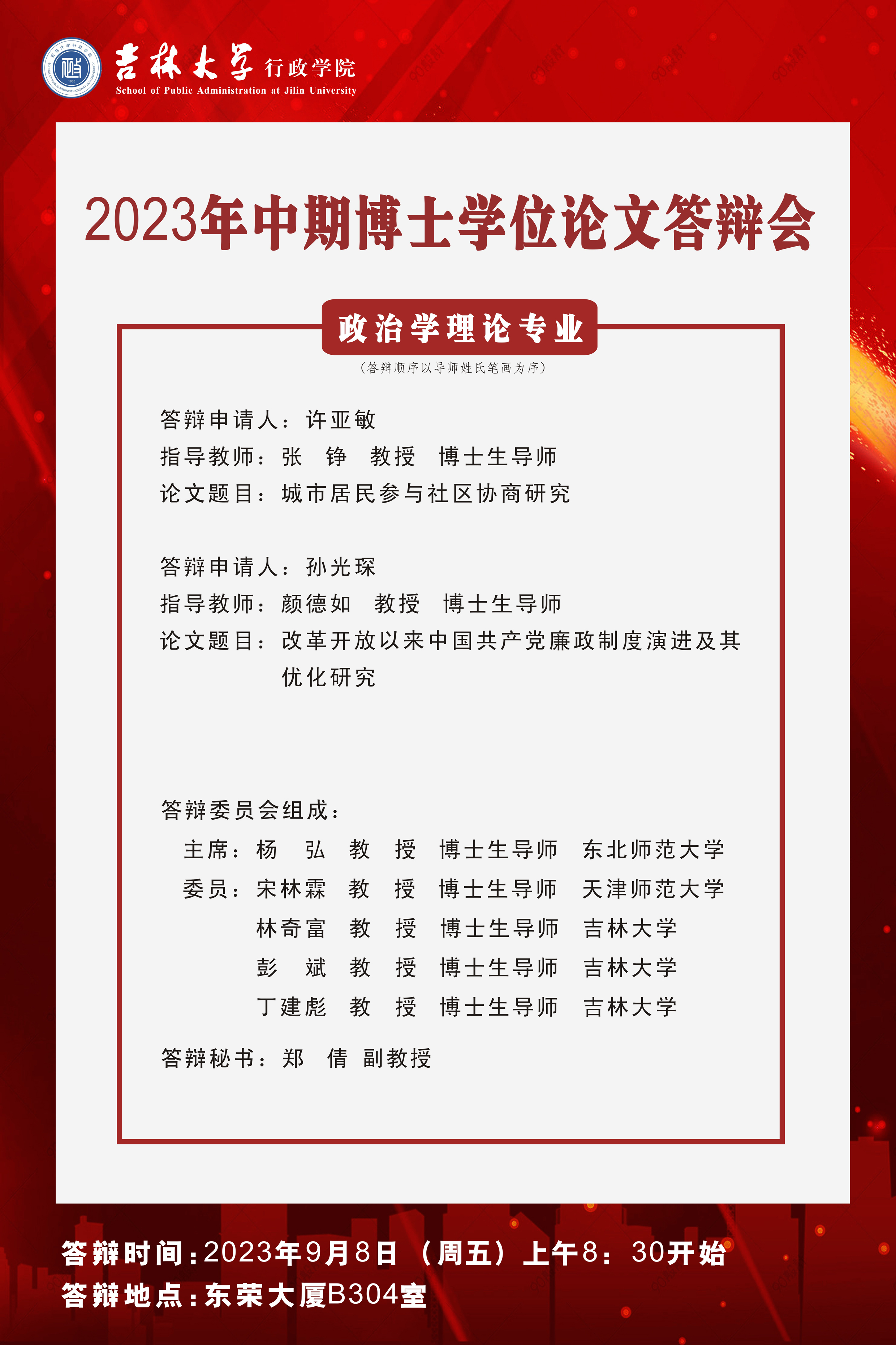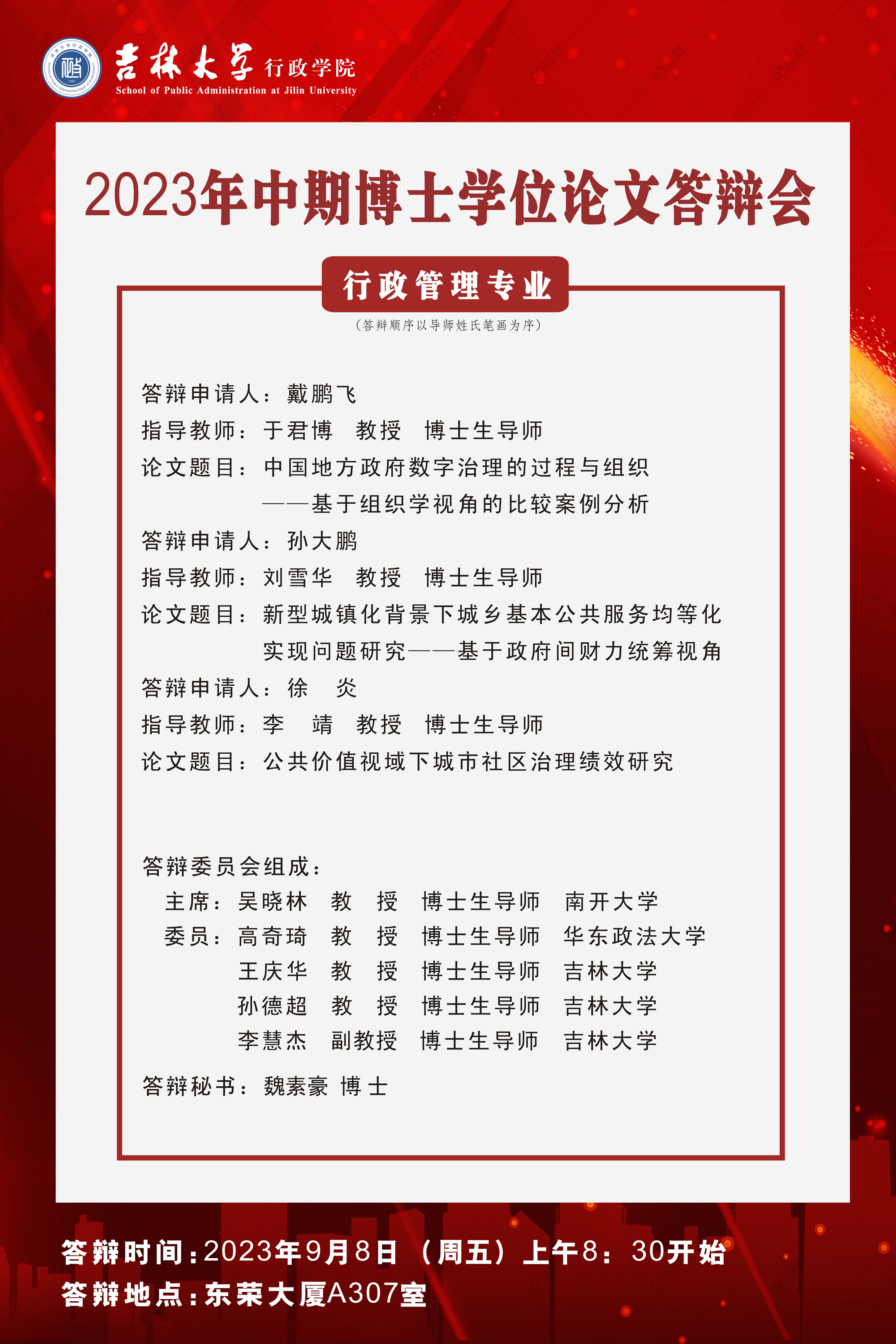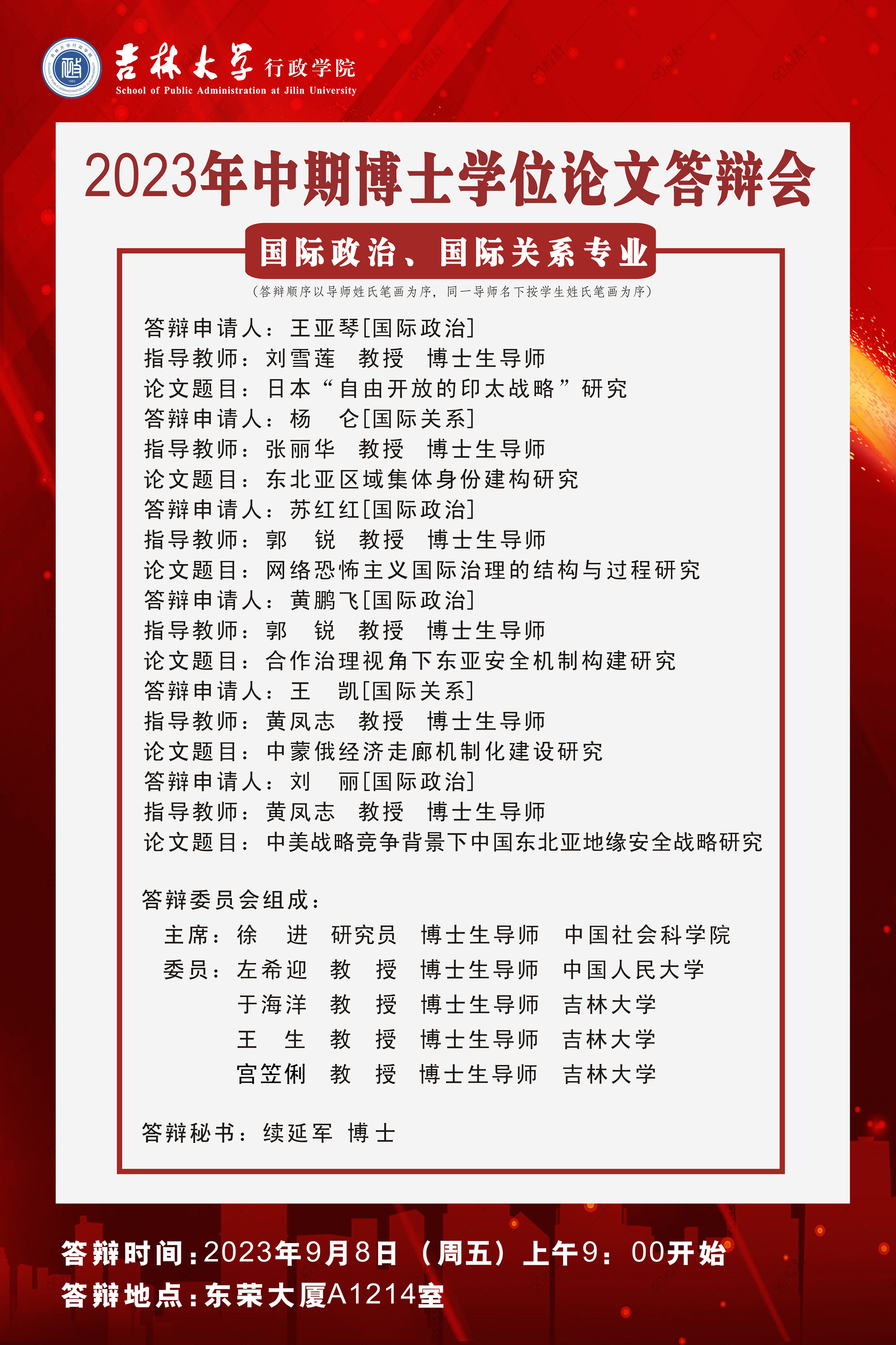 2023年中期(9月) 博士学位论文答辩公告