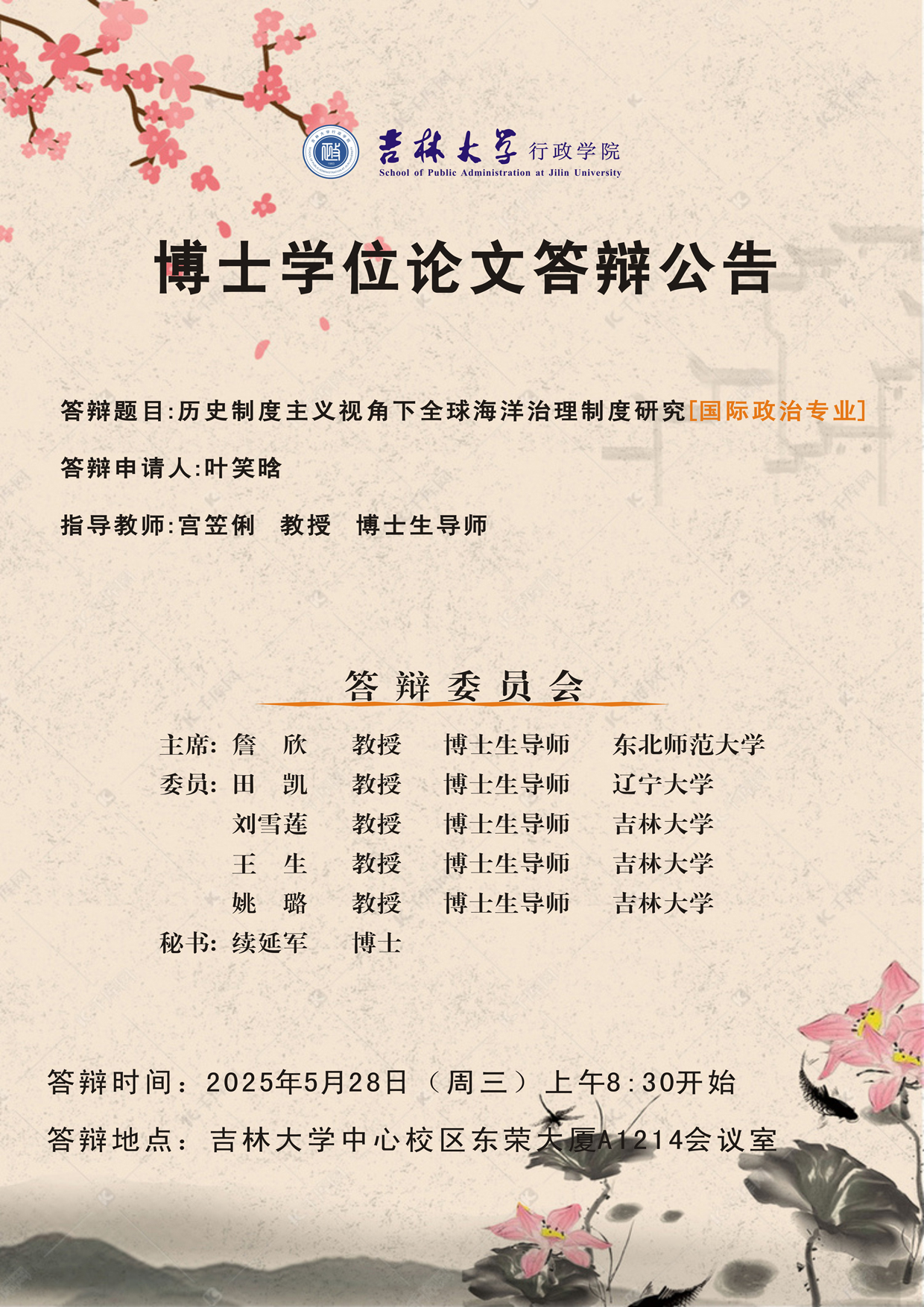 答辩时间:2025年5月28日(周三)上午8:30开始