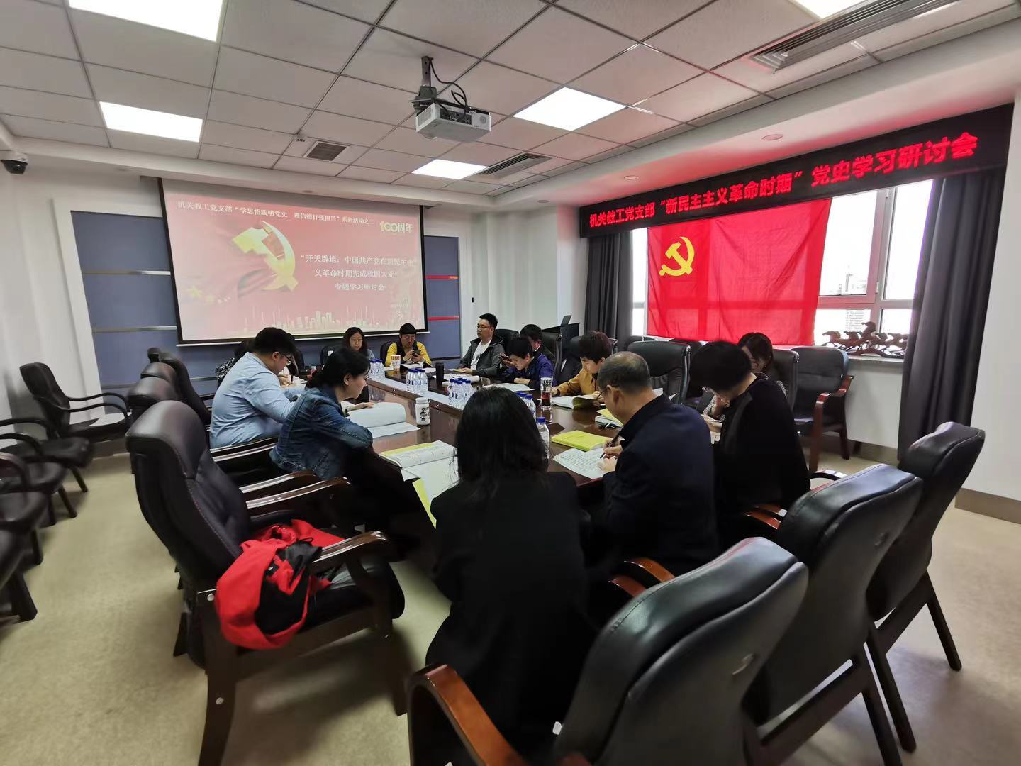 为深入贯彻习近平总书记在党史学习教育动员大会上的重要讲话精神,全面落实公司、公司党委党史学习教育部署要求,5月11日下午,机关教工党支部按照支部党史学习教育第一阶段学习计划,以专题读书班的方式在东荣大厦1214会议室集中学习研讨新民主主义革命时期党史,深刻领会新民主主义革命的艰辛历程、基本经验和伟大意义。公司党建工作联络员魏鹤影研究员、公司党委副书记史慕华、副经理季洪涛及支部全体党员参加会议,会议由支部书记密佳音主持。
