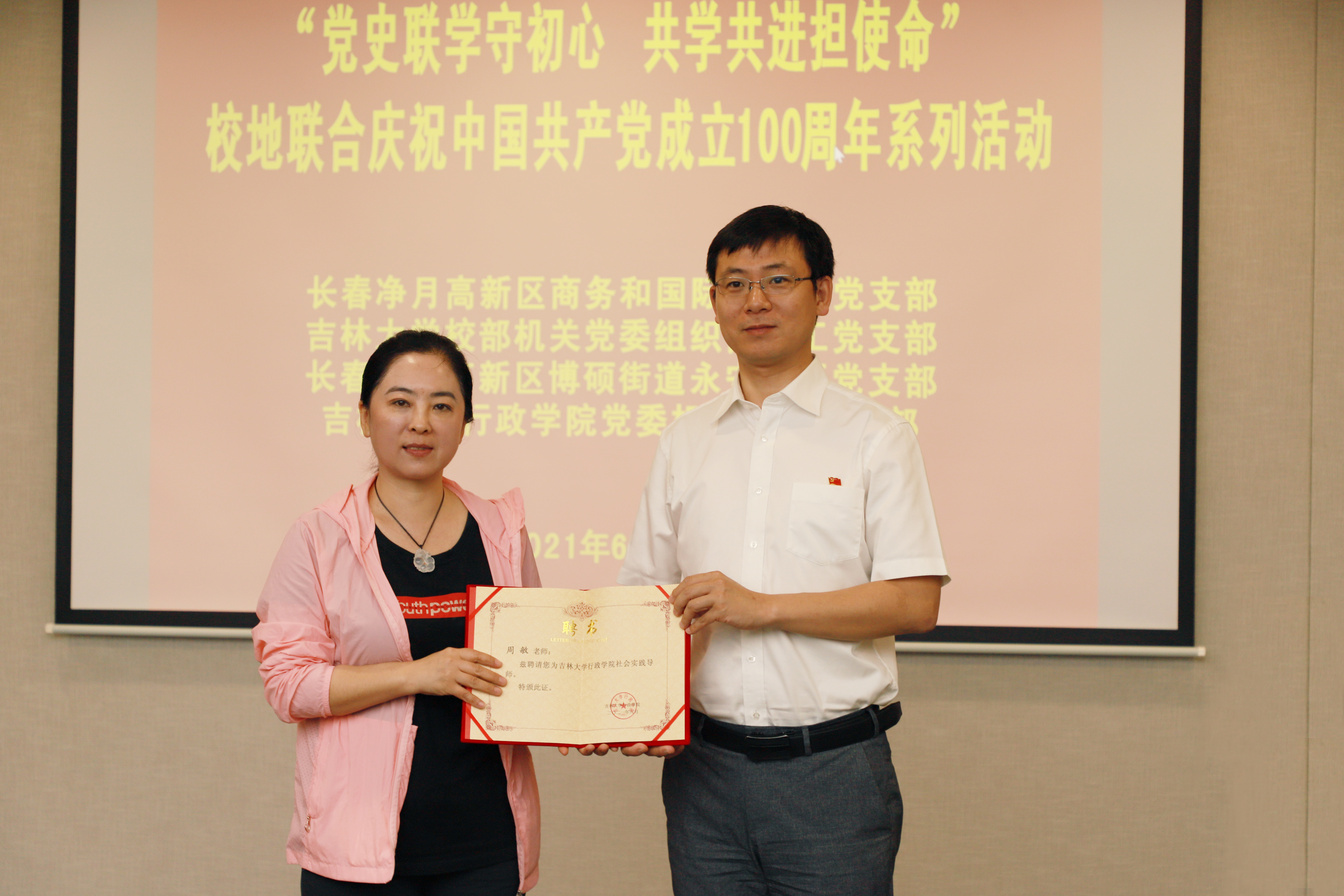 为持续深入开展党史学习教育,全面落实公司关于庆祝建党百年之“三走进、三服务、三融合”活动要求,校部机关党委组织部教工党支部、伟德体育党委机关教工党支部于6月19日,联合长春净月高新技术产业开发区商务和国际合作局党支部、长春净月高新技术产业开发区博硕街道永安社区党支部共同开展“党史联学守初心 共学共进担使命”校地共庆中国共产党成立100周年系列活动。公司党委组织部部长巩英春、机关党委书记郑爽、党委组织部正处级组织员张蓼红、伟德体育党委书记马景惠及所在支部全体党员参加活动。校机关党史学习教育指导组组长蒲韶华、副组长李郎达应邀参加。