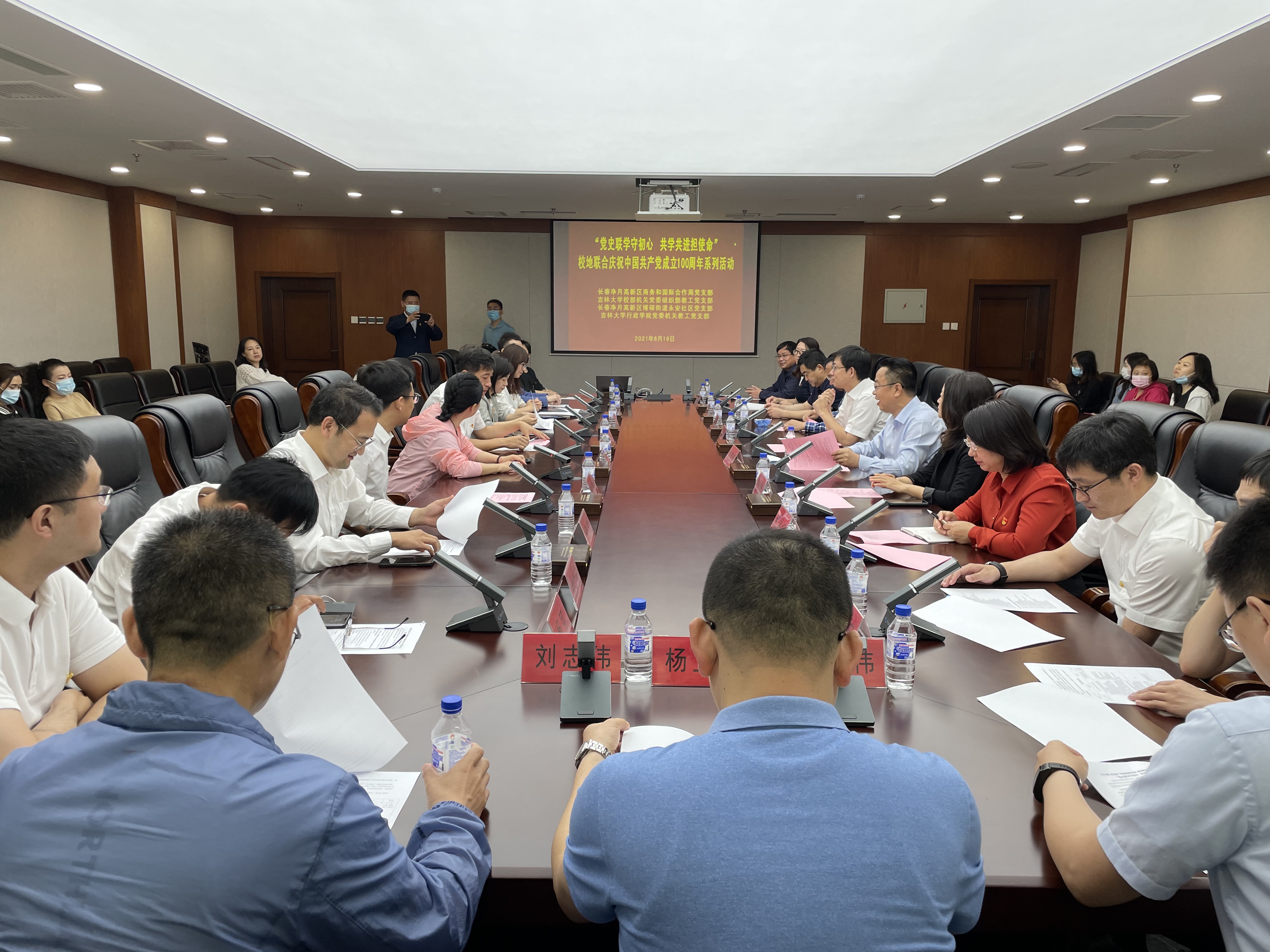 上午9时,校地双方在净月高新区管委会501会议室举行党史联学座谈会,会议由公司党委组织部挂职干部、净月高新区商务和国际合作局副局长罗超主持。会上,净月高新区商务和国际合作局局长周敏结合净月高新区最新制作的宣传片向与会人员介绍了净月高新区落实习近平总书记“以人民为中心”理念、深入贯彻习近平总书记视察吉林重要讲话指示精神的整体情况,通过展示净月高新区近年来为优化营商环境赋能高质量发展进行的实践探索,全面呈现了当前净月高新区欣欣向荣的发展态势。在发言中,她还肯定了公司选派的挂职干部在挂任岗位所做的贡献,期待与公司在挂职干部选派、产学研互促发展等方面有更深入、持续的交流合作。博硕街道永安社区党支部书记黄子娟介绍了永安社区党建工作开展情况,分享了社区基层治理和党建融合共进的工作经验。