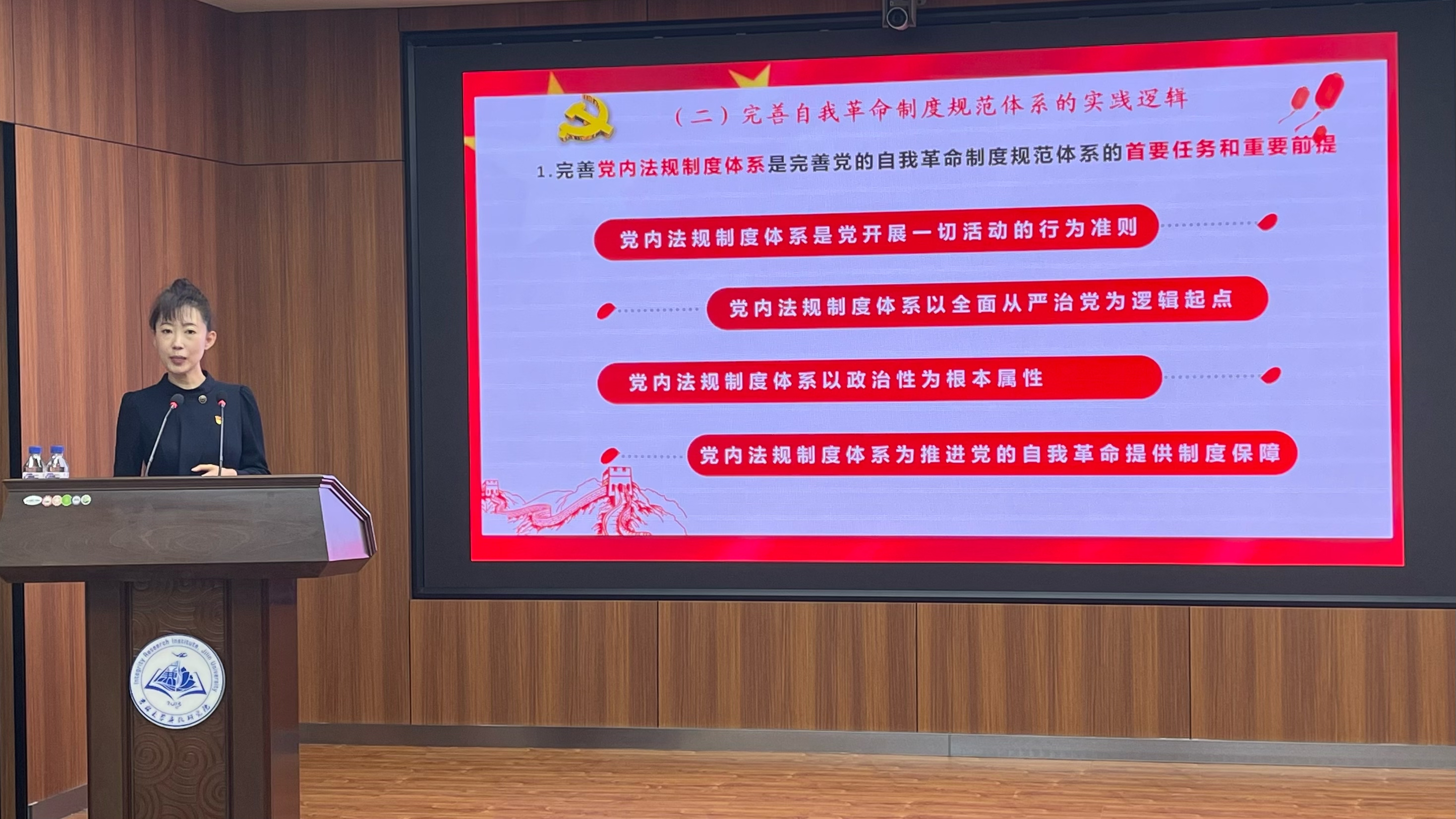 刘畅以《深入学习贯彻党的自我革命精神 淬炼新时代高校老员工廉洁品格》为题,结合刚刚参加的全国高校教师党支部书记“双带头人”高级研修班培训心得体会,旁征博引,深入浅出,为学员们呈现了一堂集知识性、哲理性、政治性为一体的党课。刘畅从历史沿革和时代要求的维度详细介绍党的自我革命的发展演进和表现形式,讲解了习近平总书记关于党的自我革命的重要战略思想,明确了新时代老员工廉洁自律的规范要求,帮助大家找到淬炼廉洁品格的着力点。刘畅剖析破解治乱兴衰历史周期律“两个答案”的辩证关系,阐明党的自我革命与社会革命的相互影响,勉励广大青年员工笃行进取、遵纪守法、勤俭节约、正直自信,在积极向党组织靠拢的过程中不断增强自我净化、自我完善、自我革新、自我提高的意识和能力。整节党课既有深刻的理论分析,也有精彩的问答互动,课堂氛围轻松融洽,学员们在听讲中聚精会神,意犹未尽。