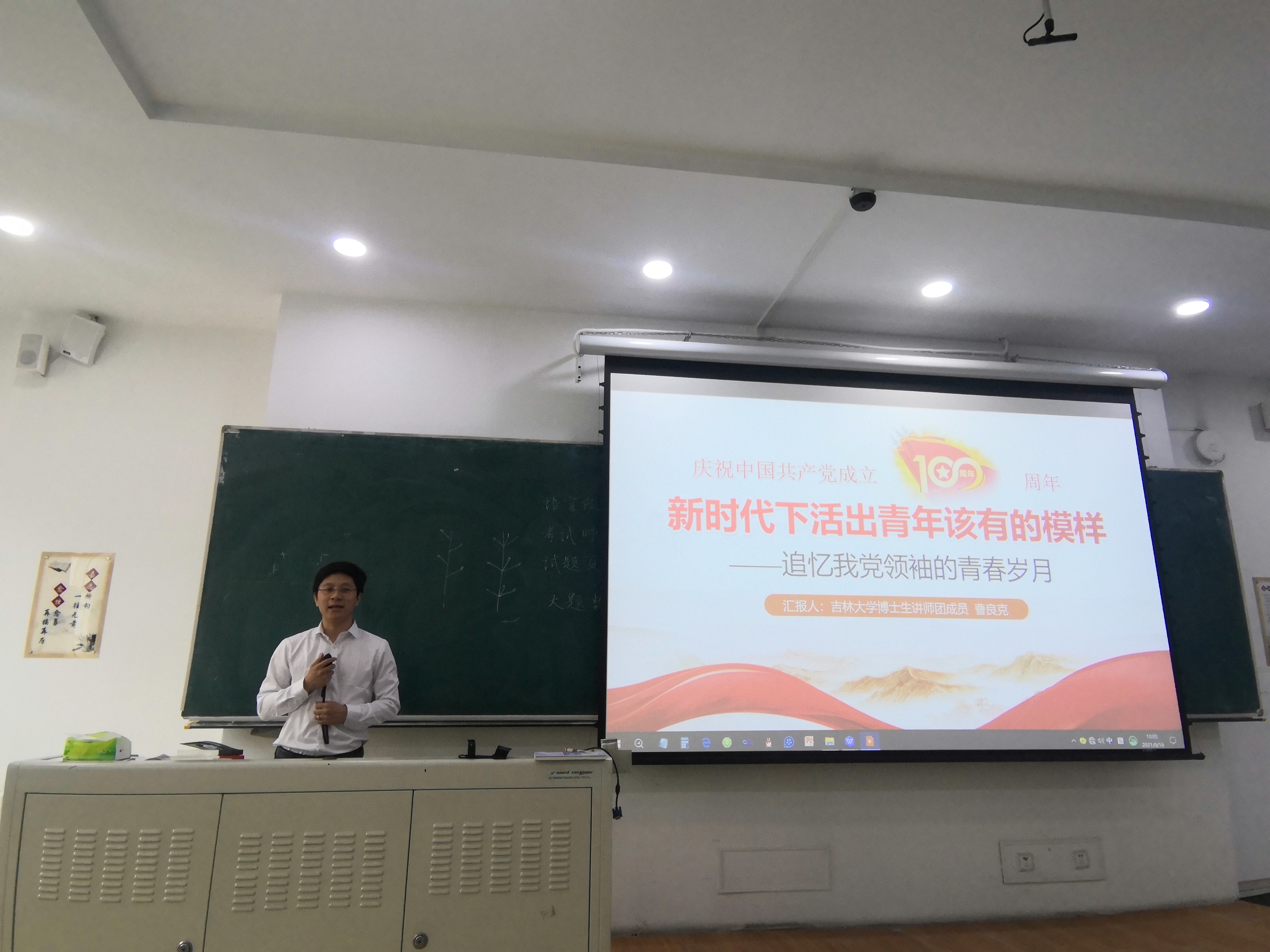 曹良克以“新时代下活出青年该有的模样——追忆我党领袖的青春岁月”为题,以青春困惑为主线展开了青年如何在立志、择业、择偶、挑战四方面进行正确抉择,从个人经历出发与师生分享了自己人生成功的秘诀。本次学习活动是用党史解释青春困惑的一次实践,从我党领袖的青年故事出发,在如何“立志”这一部分,曹良克同学通过分享《恰同学少年》中,毛泽东同志在湖南第一师范大学第一堂课的片段对志向问题的探讨,使大家对志向有了更深层次的理解。在“择业”部分,曹良克同学选择了《习近平的七年知青岁月》中陶海粟对习近平同志择业观的描述,使我们领略了习近平总书记的崇高理想。另外,在“择偶”这一部分,通过对周恩来同志与邓颖超同志情感经历,更新了我们对择偶观、婚姻观的认识。正如曹良克同学总结的一样,“爱情,是精神生活,它遵循的是理想原则;婚姻,是社会生活,它遵循的是现实原则。”在最后一部分“挑战”中,曹良克同学分享了《历史转折中的邓小平》的视频故事,使我们学习到如何面对挫折、压力和诱惑。活动过程中,曹良克同学与现场师生做了充分的交流探讨,活动气氛热烈。