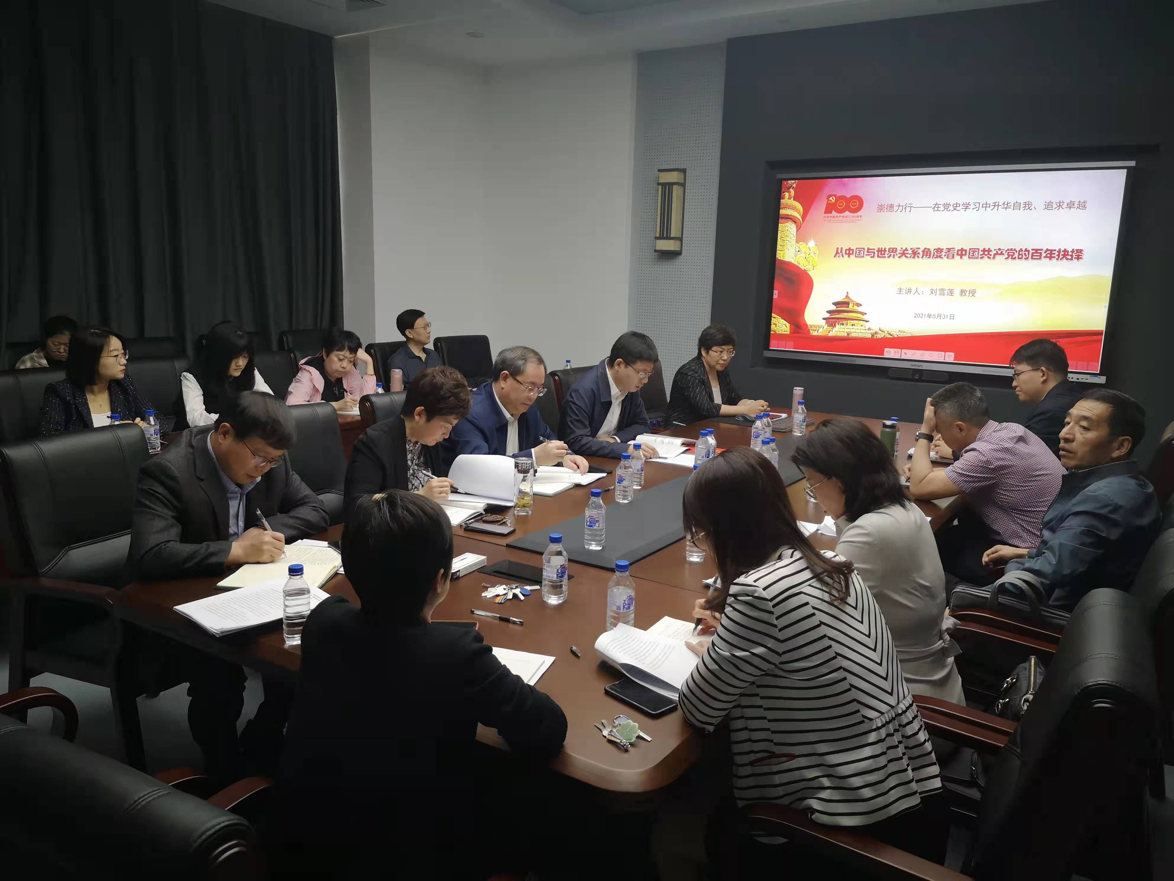 按照伟德体育党委理论学习中心组党史学习教育第一阶段学习计划,5月31日上午,伟德体育党委理论学习中心组在东荣大厦B304会议室召开“崇德力行——在党史学习中升华自我,追求卓越”专题学习研讨会。公司邀请刘雪莲教授做题为“从中国与世界关系角度看中国共产党的百年抉择”专题导学报告,公司领导班子成员、党委委员、国际政治学系党员参加了本次集中学习研讨,公司党史学习教育第4指导组列席研讨会并作指导。会议由党委书记马景惠主持。