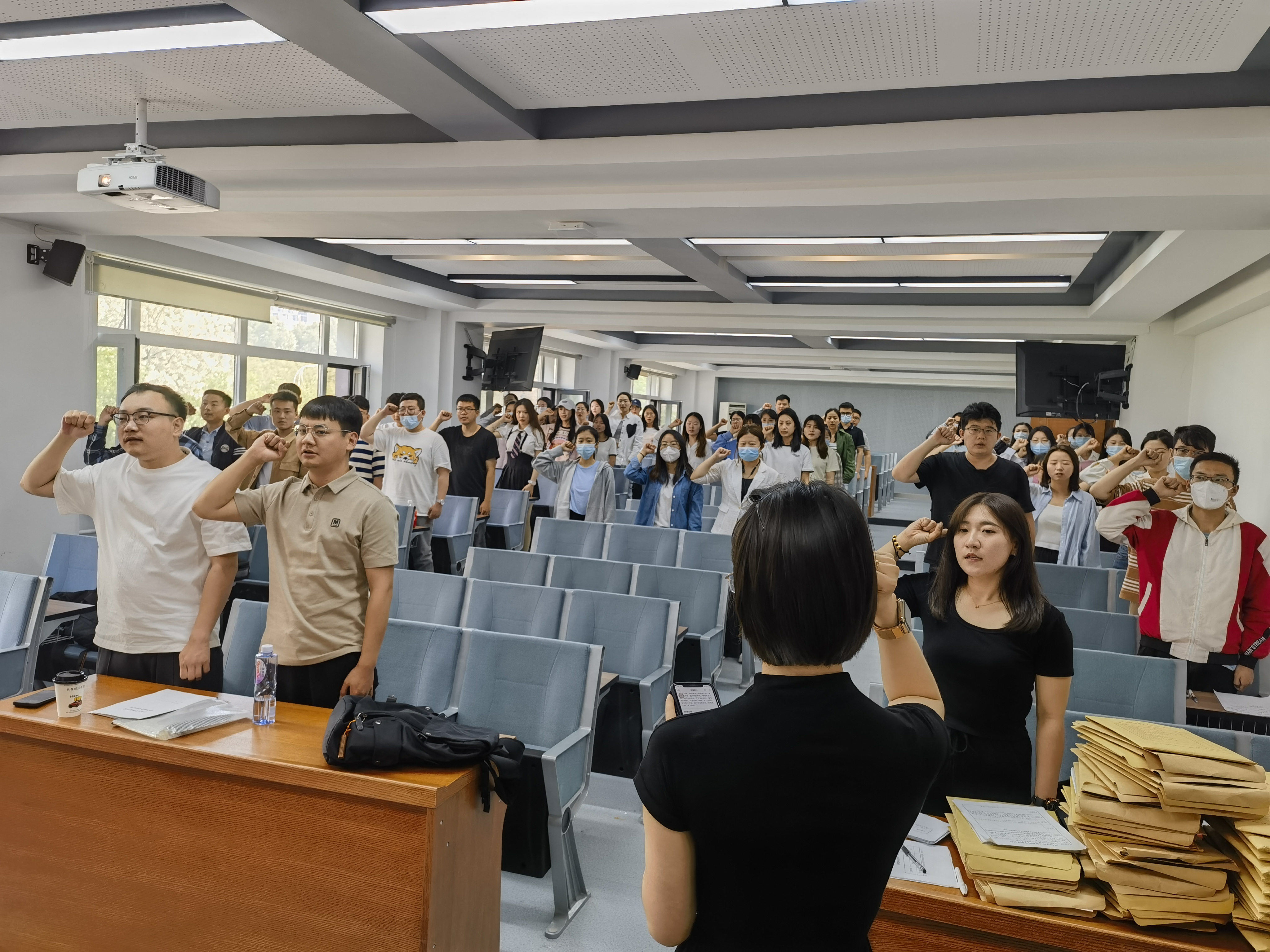大会第二项,进行全体党员大会。高琛老师对党员档案和党组织关系转接与查档事项进行了细致讲解。会议最后,党支部书记沈丽同学组织所有党员同学进行宣誓,重温入党誓词。