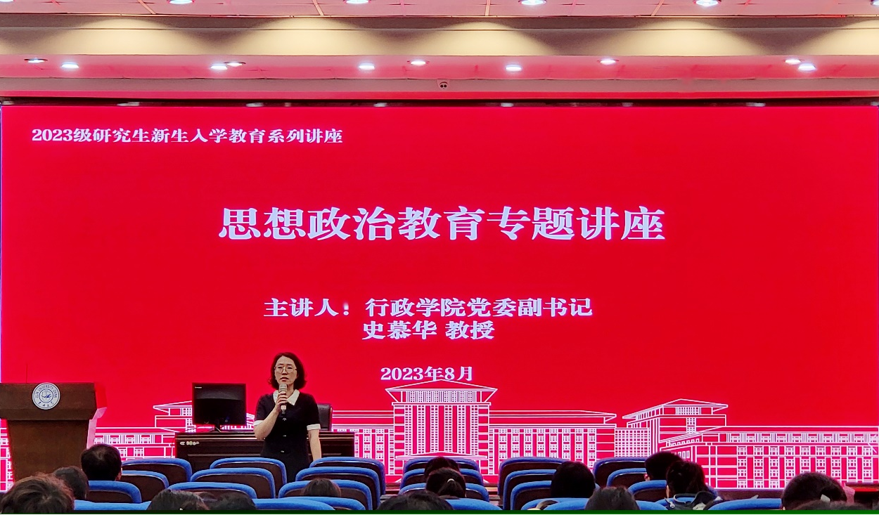 为引导2023级研究生新生形成正确的思想观念,提高政治素养,培育有理想、有道德、有文化、有纪律的行政学子。8月30日,伟德体育于东荣大厦B310报告厅举办2023级研究生新生思想政治教育暨新生专题党课。本次党课由党委副书记史慕华教授主讲,研究生辅导员高琛、2023级全体研究生新生参加。